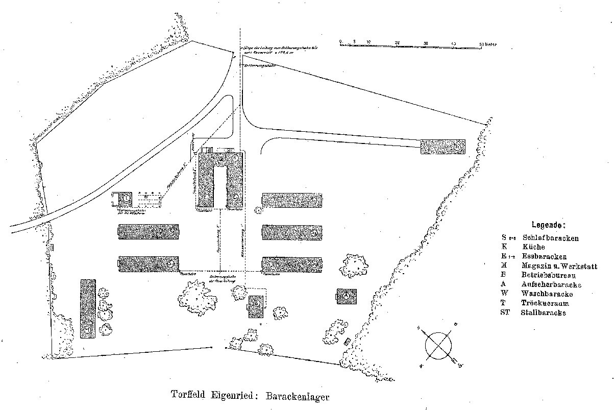 Plan des Barackenlagers der Torfarbeiter: Standort von Posten 4 'Wie Torfarbeiter wohnten'