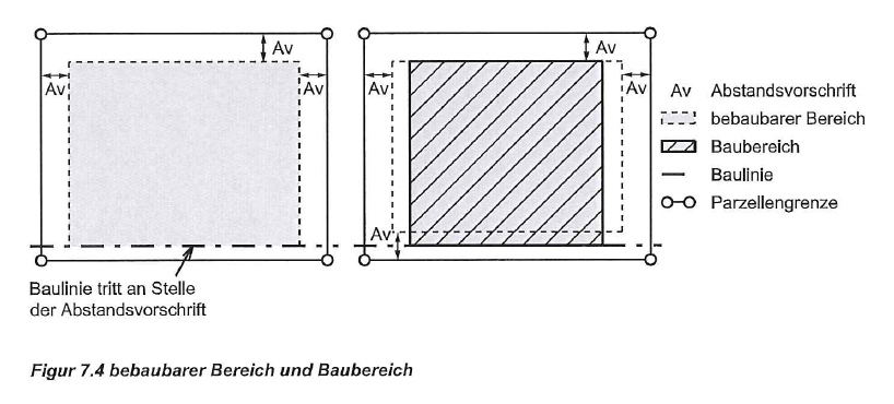 Wie die Figur 7.4 im Anhang 2 der IVHB verdeutlicht, ist unter einem Baubereich im Sinne des Konkordats die nutzungsplanerische Festlegung einer konkreten, allseitig abgegrenzten Fläche zu verstehen, in der Gebäude erstellt werden dürfen (vgl. dazu die SIA-Norm 423, Ziffer 10.22). Im deutschen Sprachgebrauch ist oft auch von einem «Baufeld» die Rede. Solche kommen etwa in Sondernutzungsplänen vor. Die Festlegung von Baubereichen geht nach den juristischen Auslegungsregeln als Detailvorschrift den allgemeinen Abstandsvorschriften vor, unter Vorbehalt von zwingendem höherrangigem Recht. Die konkreten Wirkungen eines Baubereichs sollten wie bei Baulinien vom kantonalen Recht näher festgelegt werden. Kollisionen zwischen Baubereichen und Baulinien sind zu vermeiden.