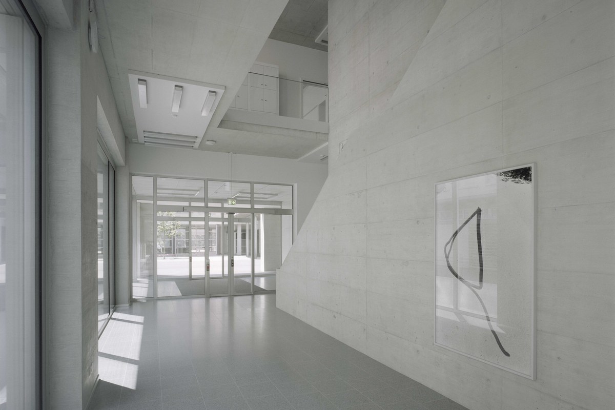 Die Gebäudestruktur des Neubaus musste auf die bestehende Einstellhalle im Untergeschoss abgestimmt werden. Darüber erheben sich ein Erdgeschoss mit einem grossen, durch eine Faltschiebewand unterteilbaren Seminarraum sowie fünf identische Obergeschosse mit jeweils vier übereck orientierten Klassenzimmern und zwei Gruppenräumen. Die Geschosse sind durch einläufige Treppen mit Zwischenpodesten untereinander verbunden.