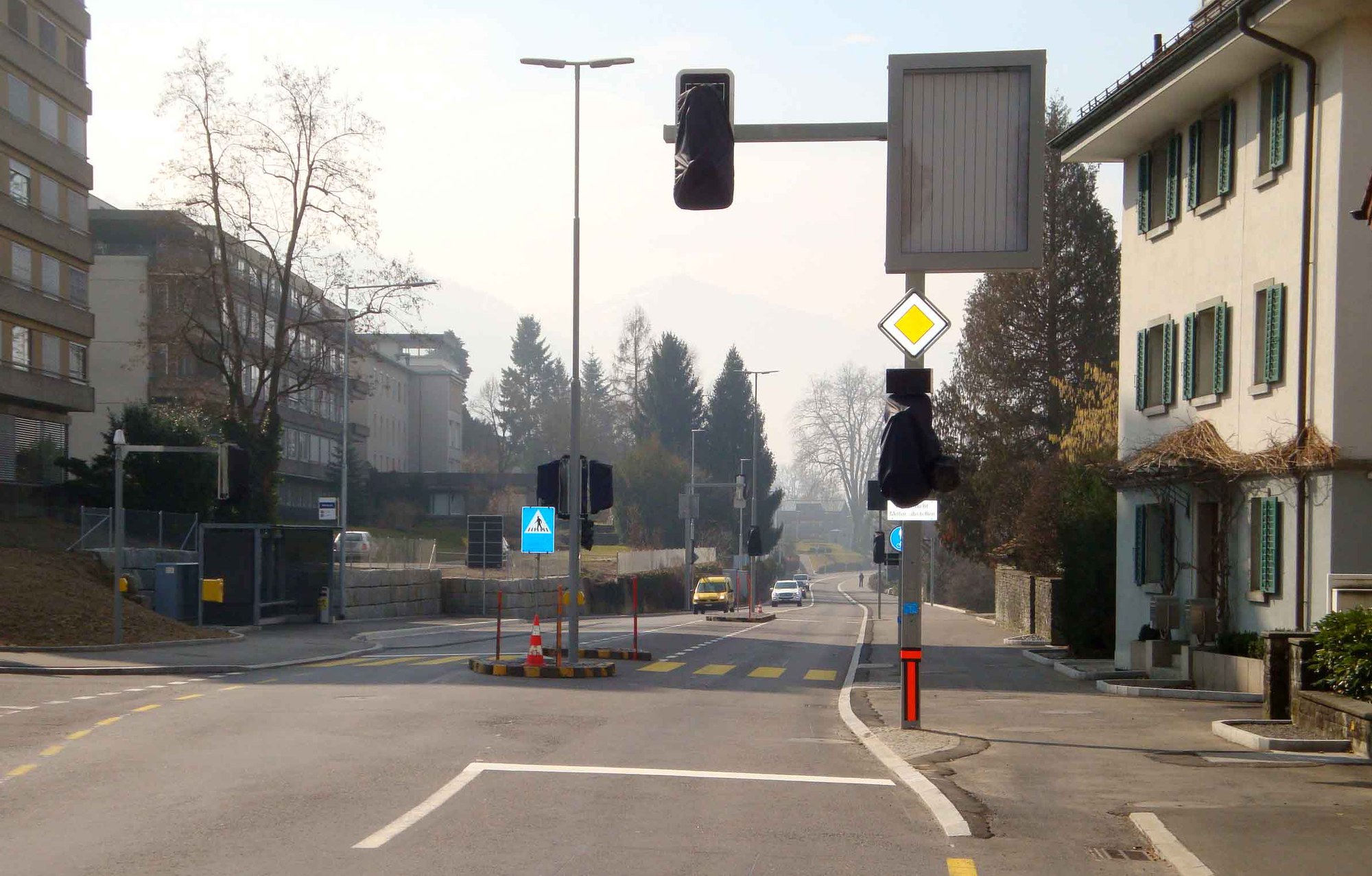 Damit das System gefahrlos funktioniert, braucht es flankierende Massnahmen. Heinz Tännler: "Zum einen mussten wir die privaten Ausfahrten in die Artherstrasse mit separaten Lichtsignalen in das Steuerungssystem einbinden. Dann galt es, den Rad-Gehweg seeseits der Artherstrasse durchgängig auf drei Meter zu verbreitern, damit die Radfahrenden getrennt vom motorisierten Verkehr zirkulieren können. Und schliesslich haben wir in Absprache mit der Stadt Zug die öffentlichen Parkplätze im Abschnitt Fridbach - Mänibach aufgehoben."
