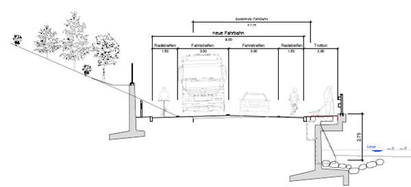 - Verbreiterung der Fahrbahn um 1.5 bis 3.0 m
