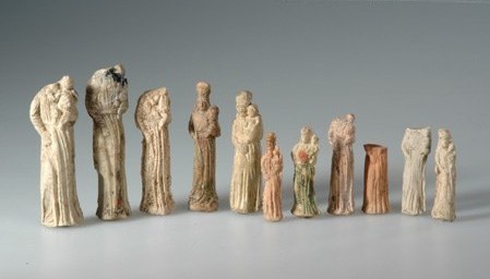 Madonnen-Statuetten des 18. Jahrhunderts aus Einsiedeln, gefunden im Kanton Zug. Die Kopien des Einsiedler Gnadenbildes sollen mit Material aus der Gnadenkapelle hergestellt worden sein, weshalb abgeschabtes Material der Figürchen im Glauben an eine wundertätige Wirkung verzehrt wurde.
