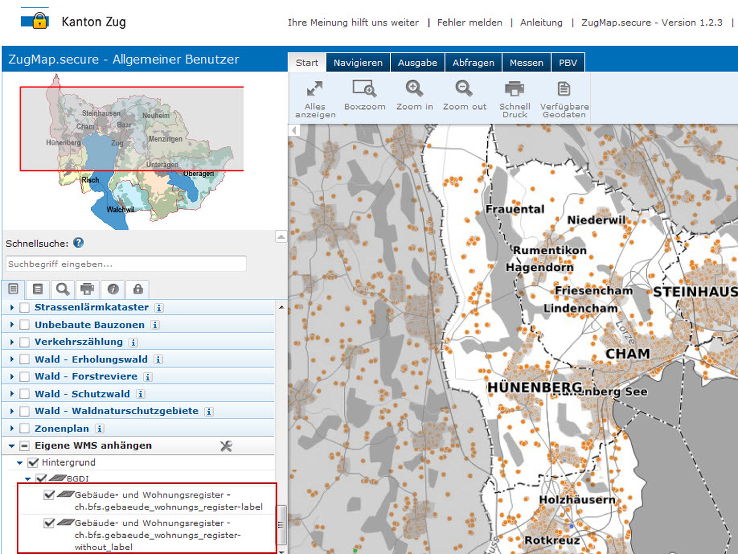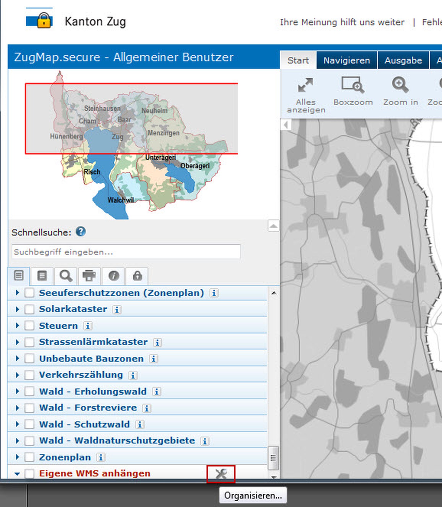 Anleitung, wie in ZugMap.secure ein WMS eingebunden und dargestellt werden kann.