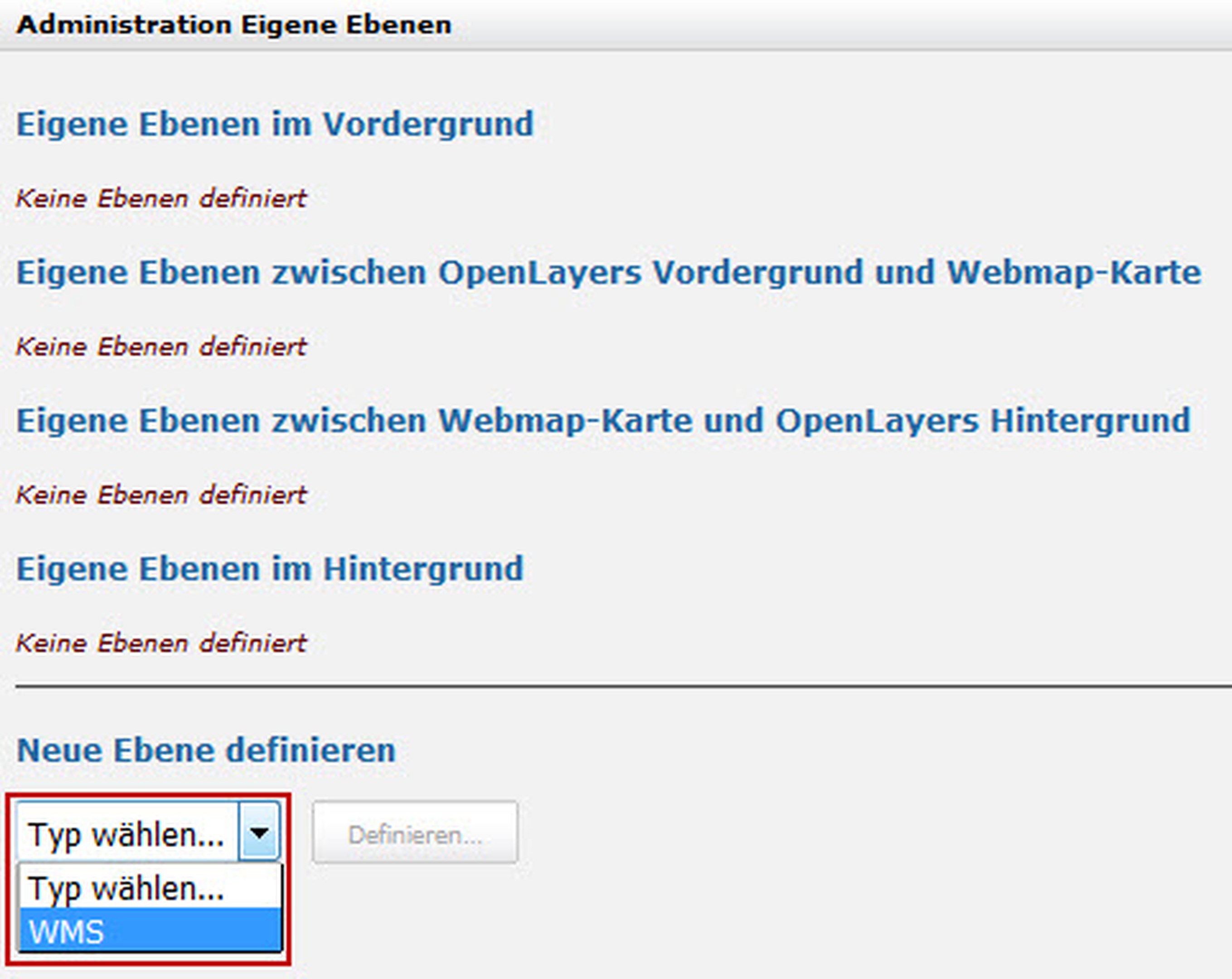 - Anzeigelevel auswählen: in der Regel "Vordergrund"; damit wird der WMS vor dem Hintergrundbild in ZugMap.secure dargestellt