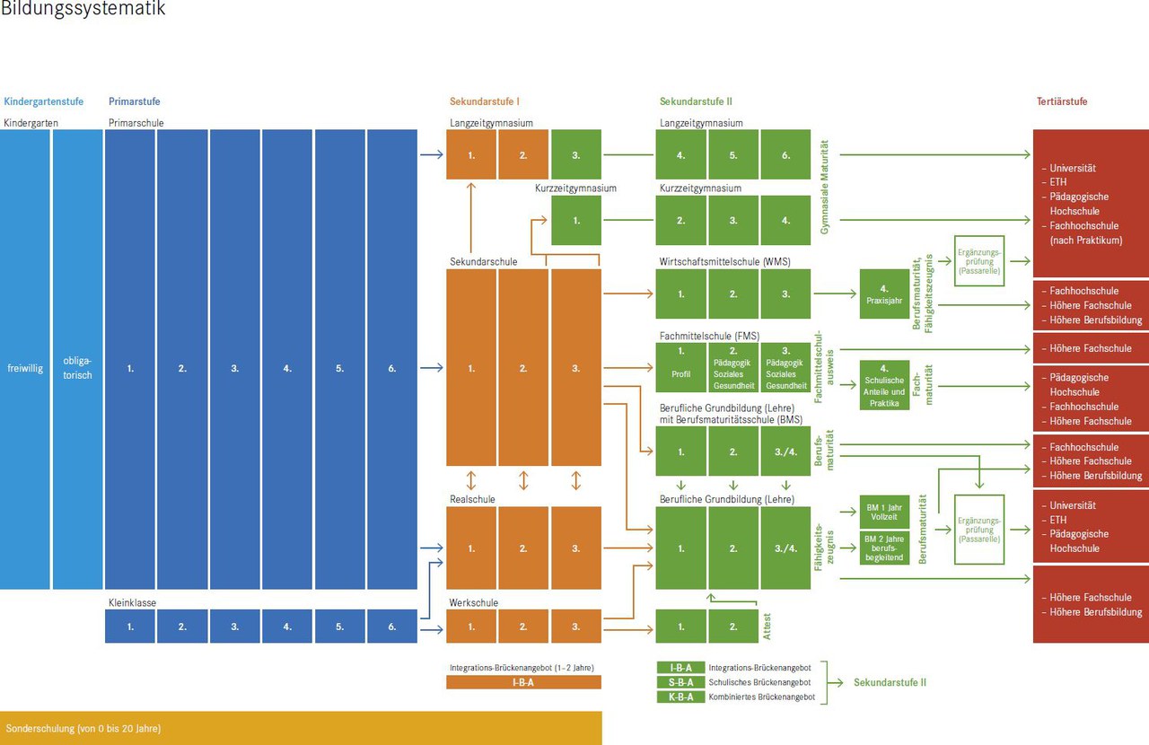 Am Ende der Sekundarstufe II erfolgt der Berufseintritt oder der Übertritt an eine Schule der Tertiärstufe. Sämtliche Bildungswege der Sekundarstufe II — auch der Weg über die Berufslehre — bieten bei entsprechender Befähigung und Leistungsbereitschaft die Möglichkeit, eine Maturität und damit einen Hochschulzugang zu erlangen.