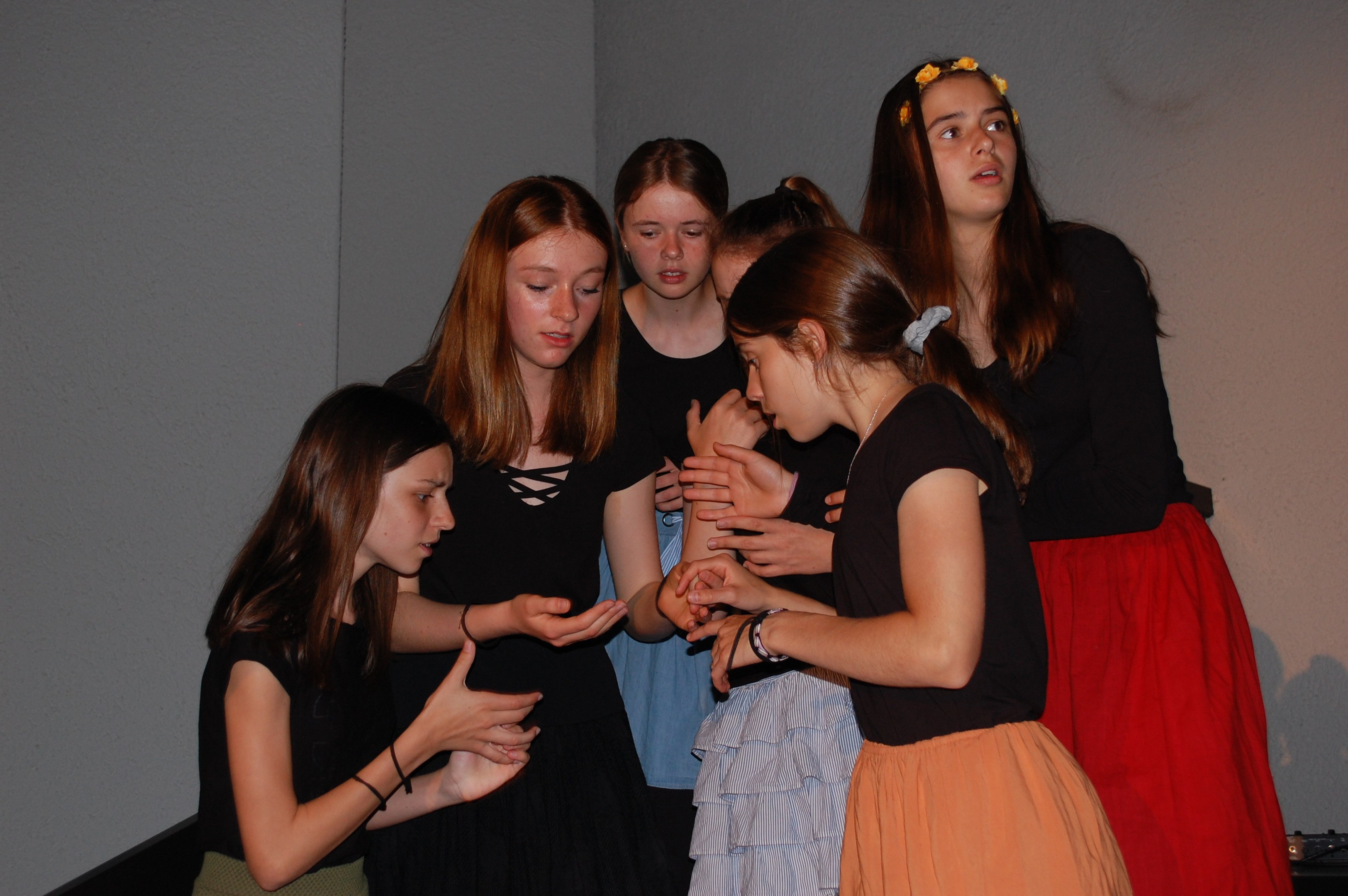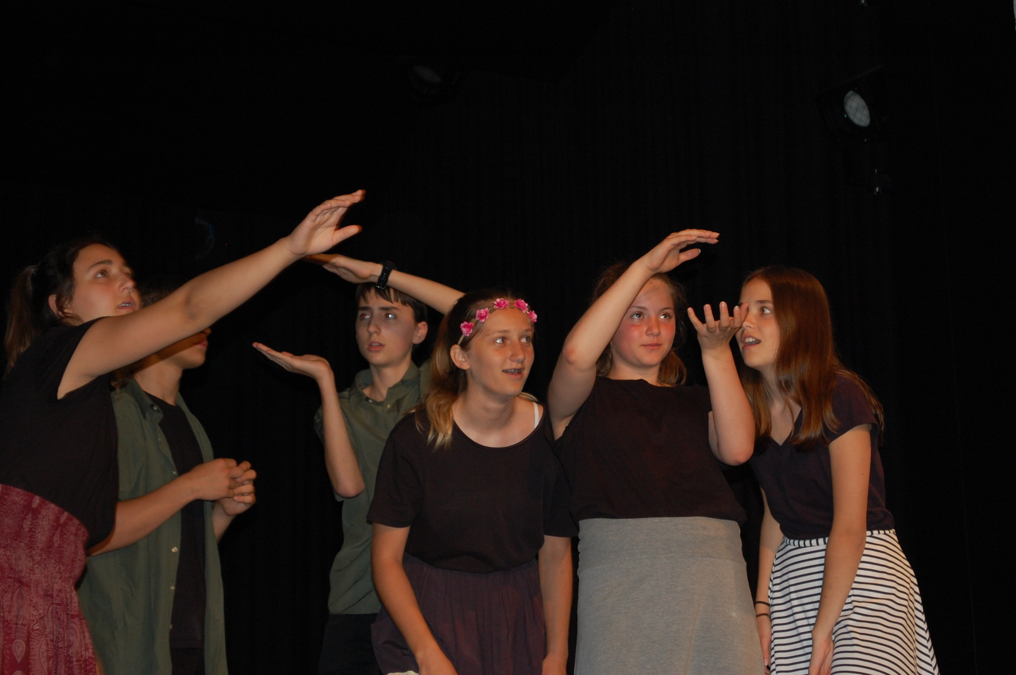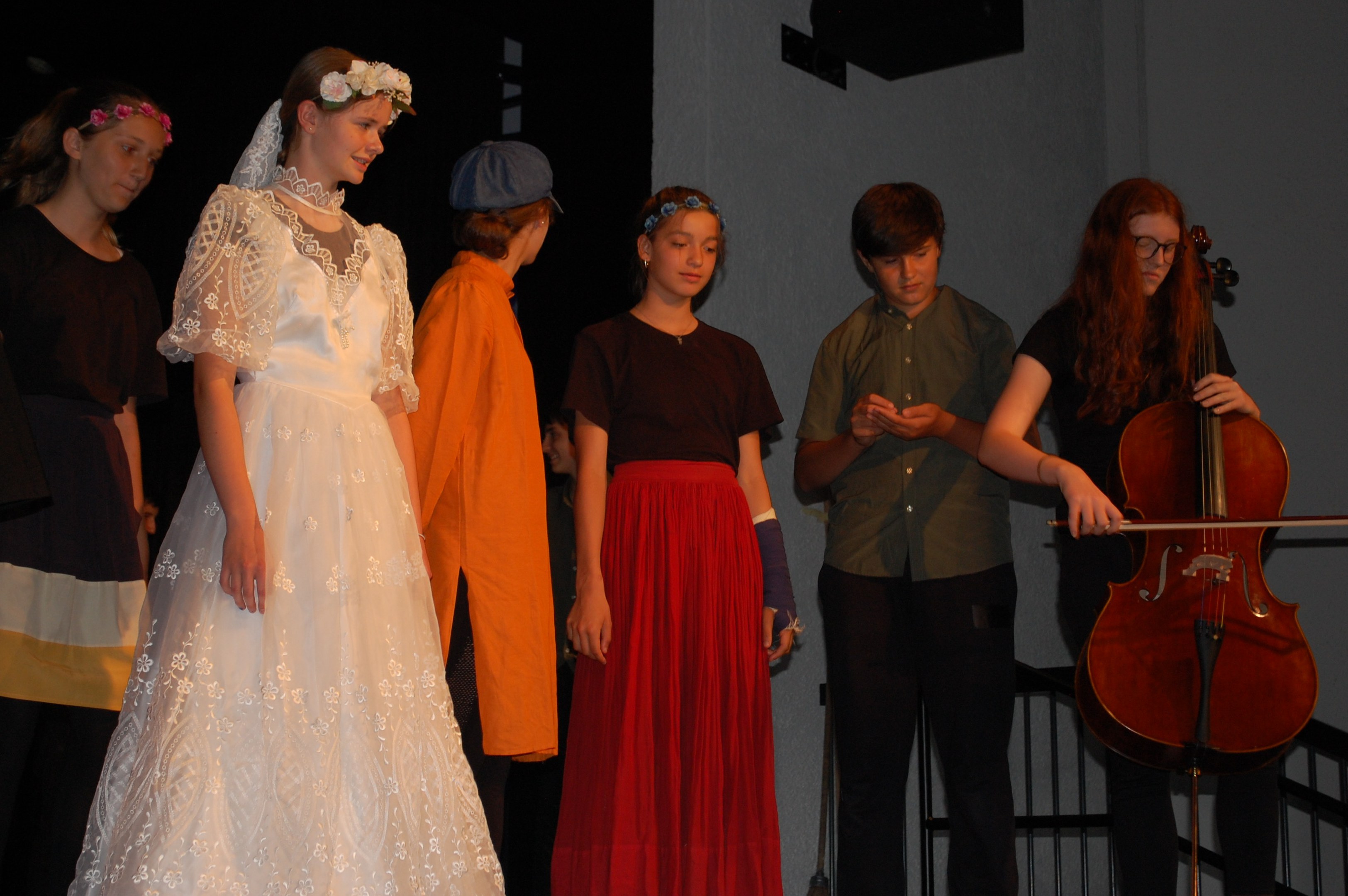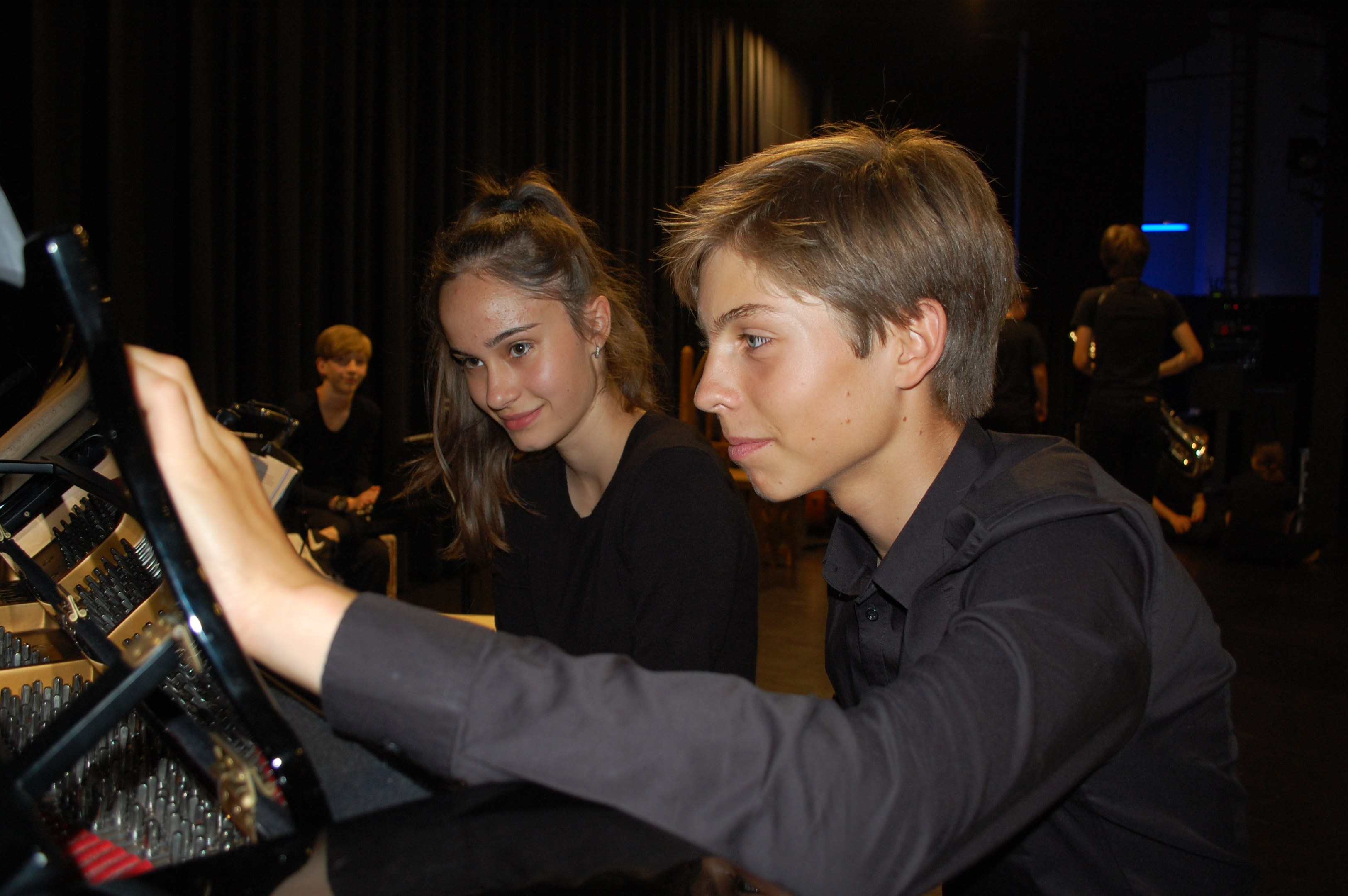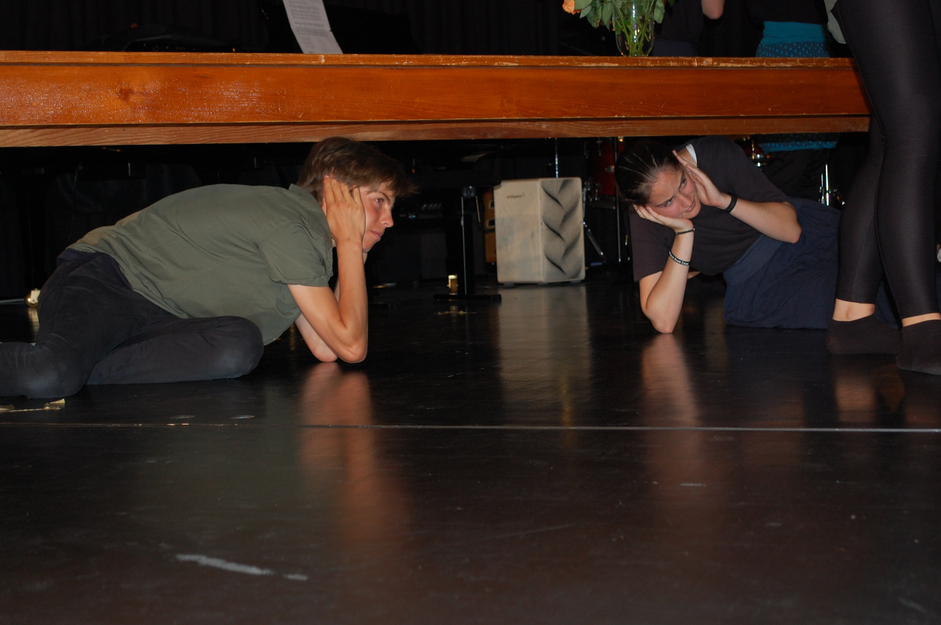Am Montagmorgen der Sonderwoche »Musisches Projekt« kannten (fast) alle 40 Beteiligten ihre Rolle auswendig. Sie wussten, am Donnerstagabend würde die Aufführung stattfinden. Bis dahin musste die Rockband, das Streichquartett, das dreistimmige Lied, die Choreographie des Tanzes, die Masken, die Kleider, das ganze 5/4-stündige Theater bereit sein. Ohne Verstärkung und das in der grossen Aula.