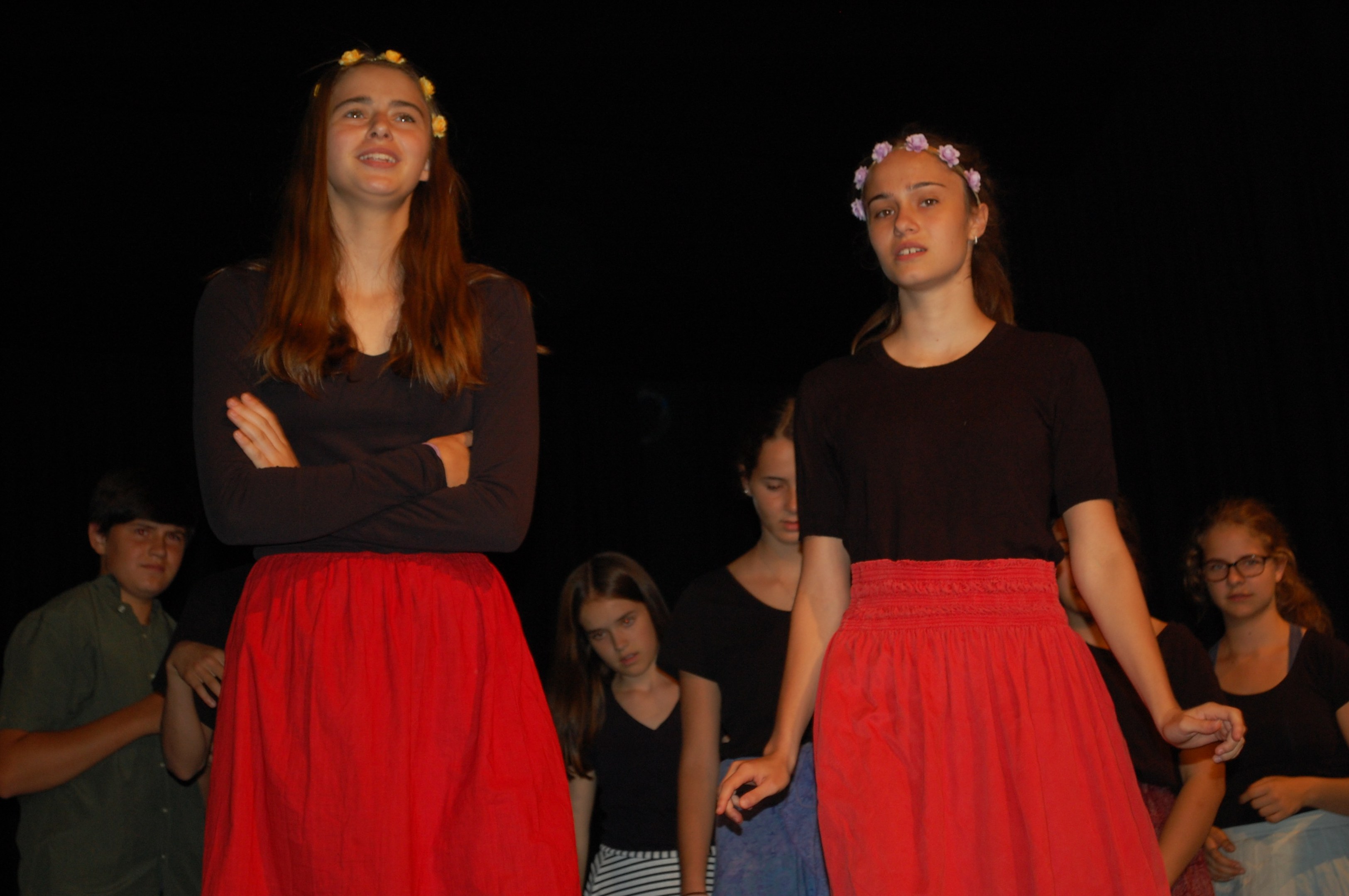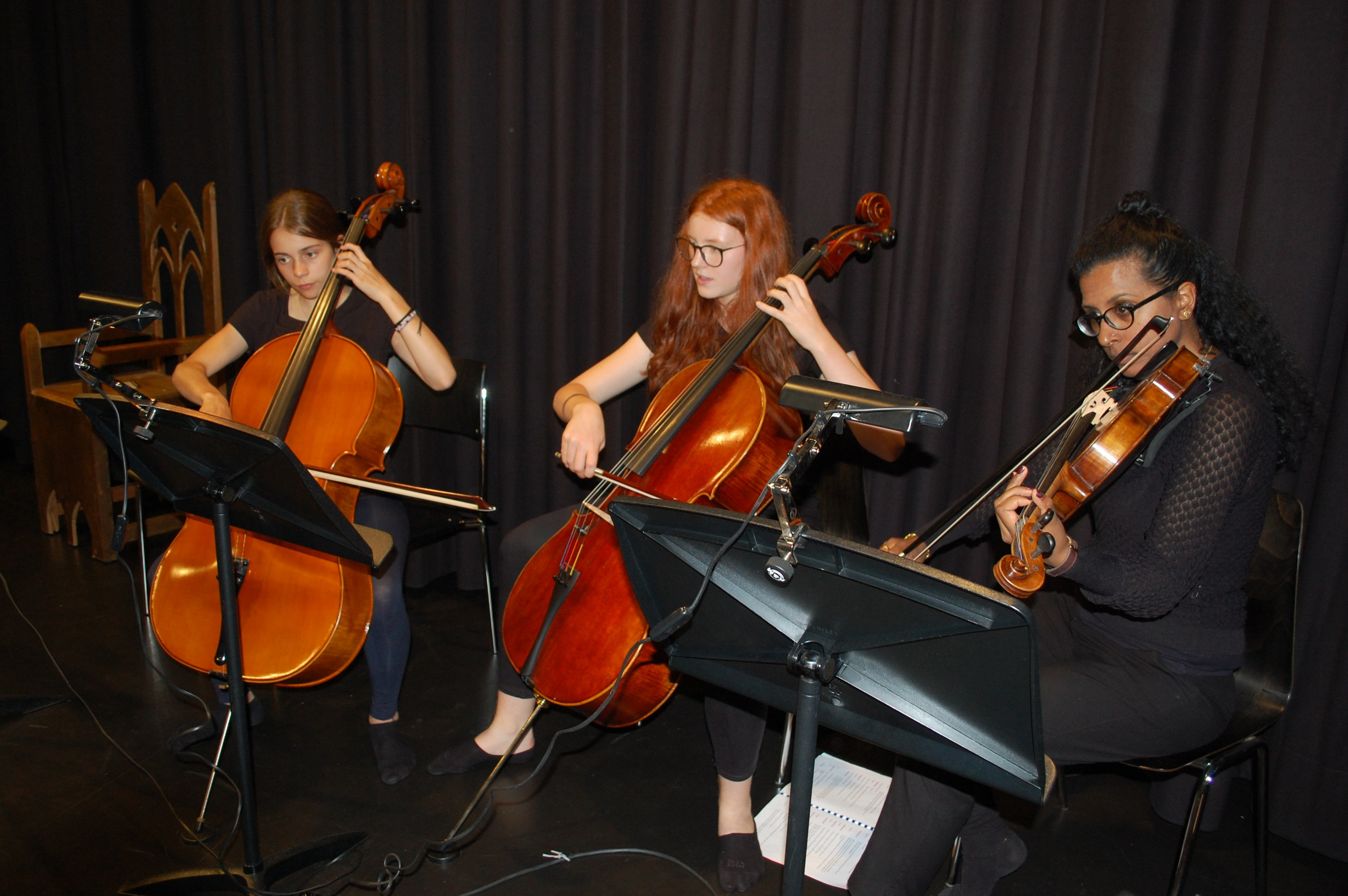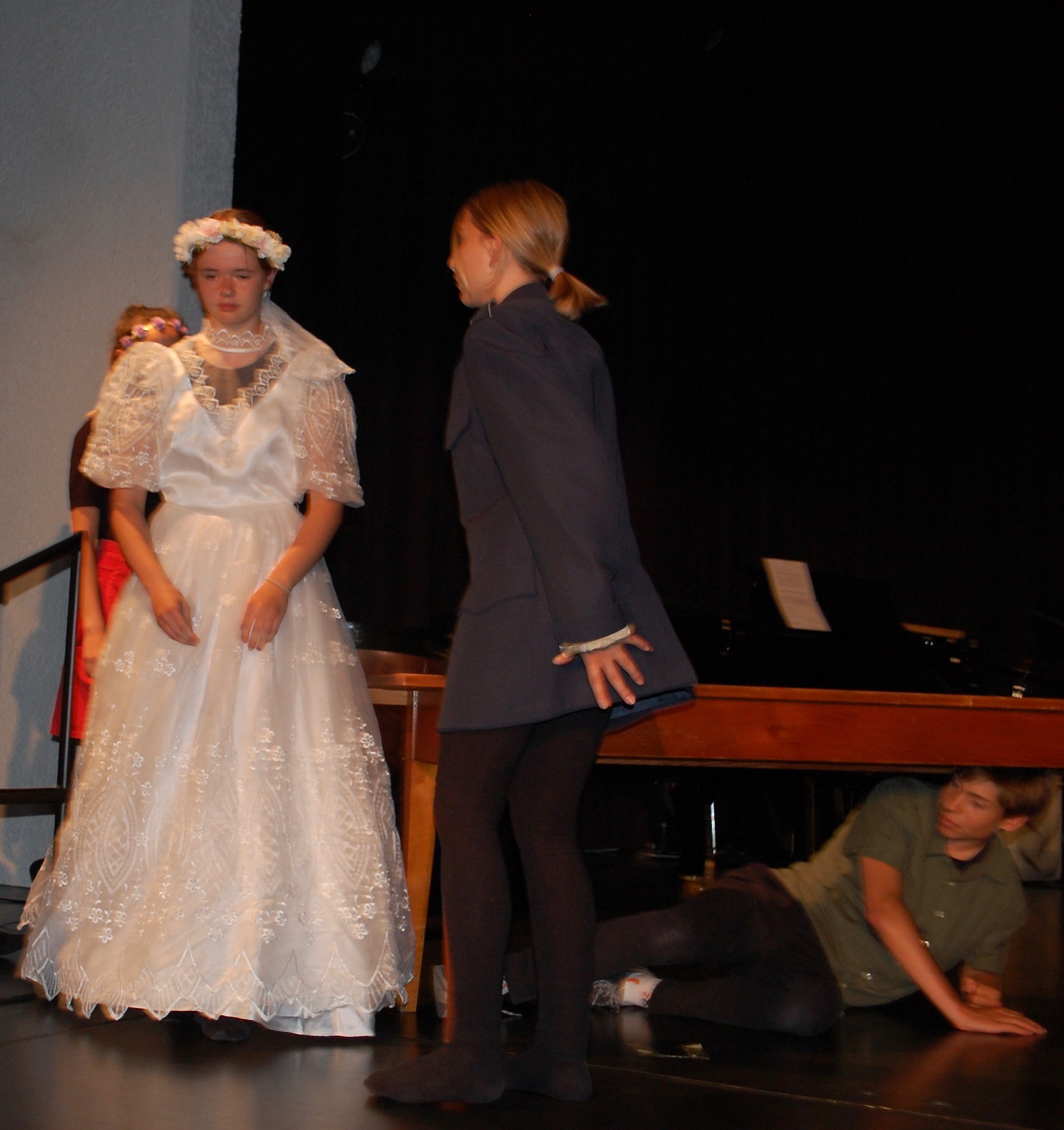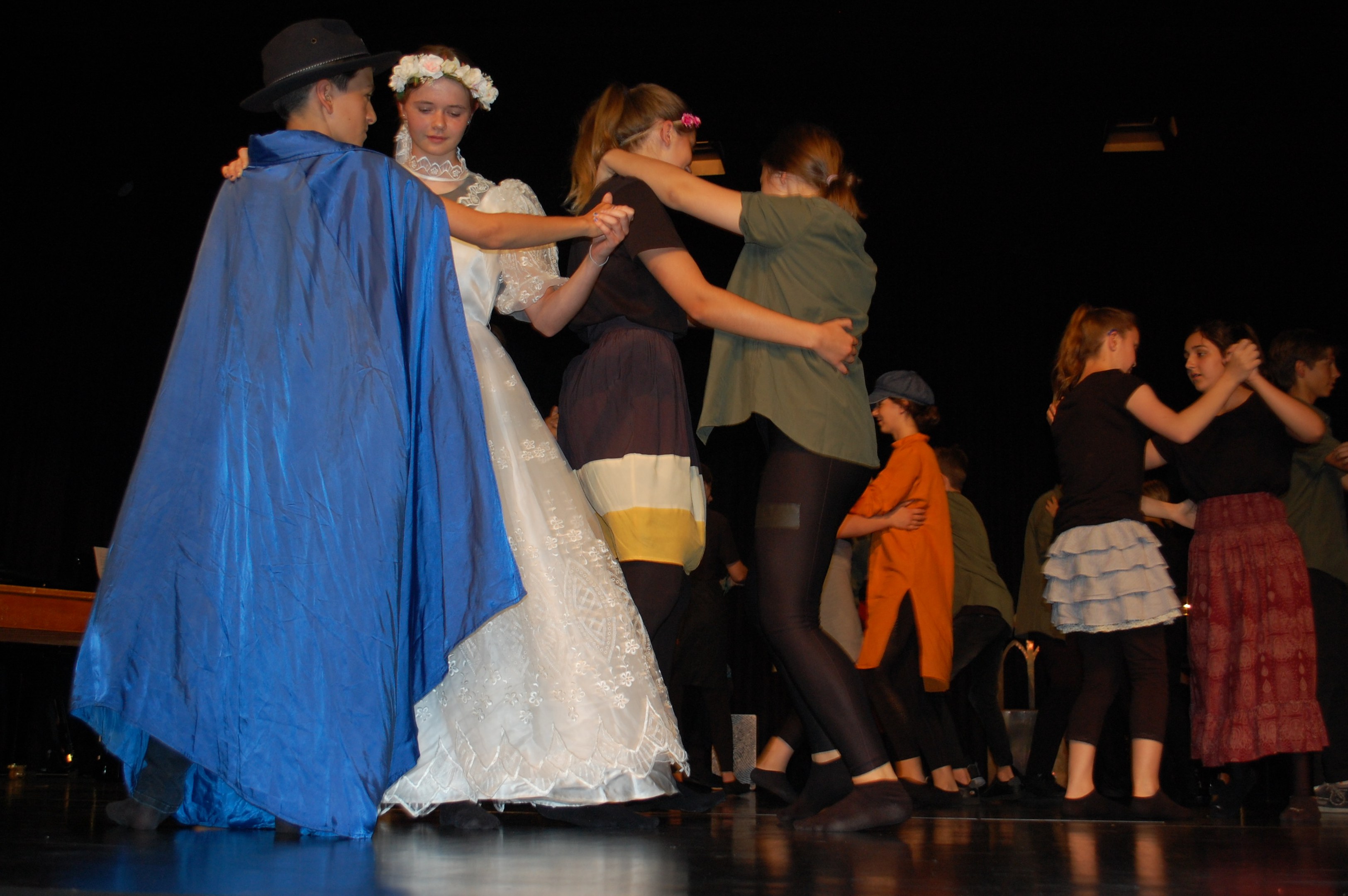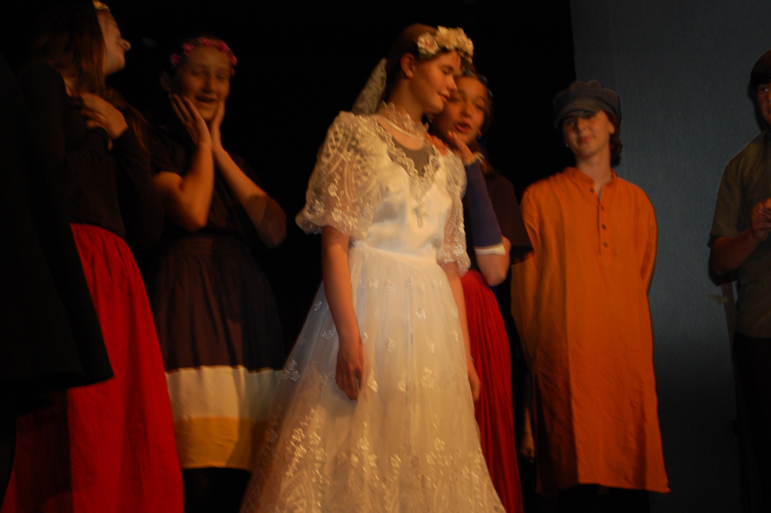 Am Montagmorgen der Sonderwoche »Musisches Projekt« kannten (fast) alle 40 Beteiligten ihre Rolle auswendig. Sie wussten, am Donnerstagabend würde die Aufführung stattfinden. Bis dahin musste die Rockband, das Streichquartett, das dreistimmige Lied, die Choreographie des Tanzes, die Masken, die Kleider, das ganze 5/4-stündige Theater bereit sein. Ohne Verstärkung und das in der grossen Aula.