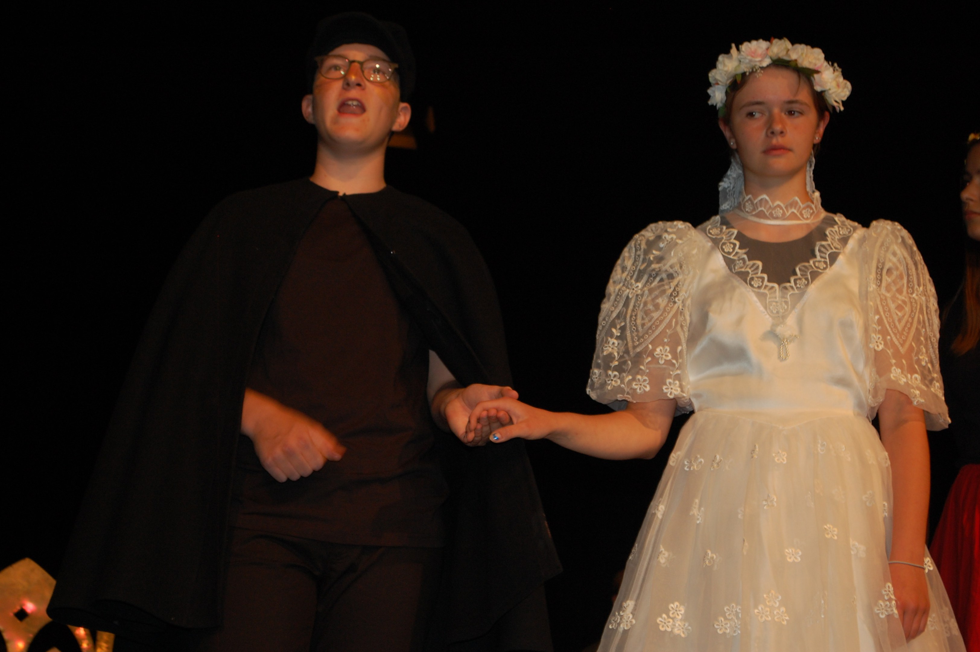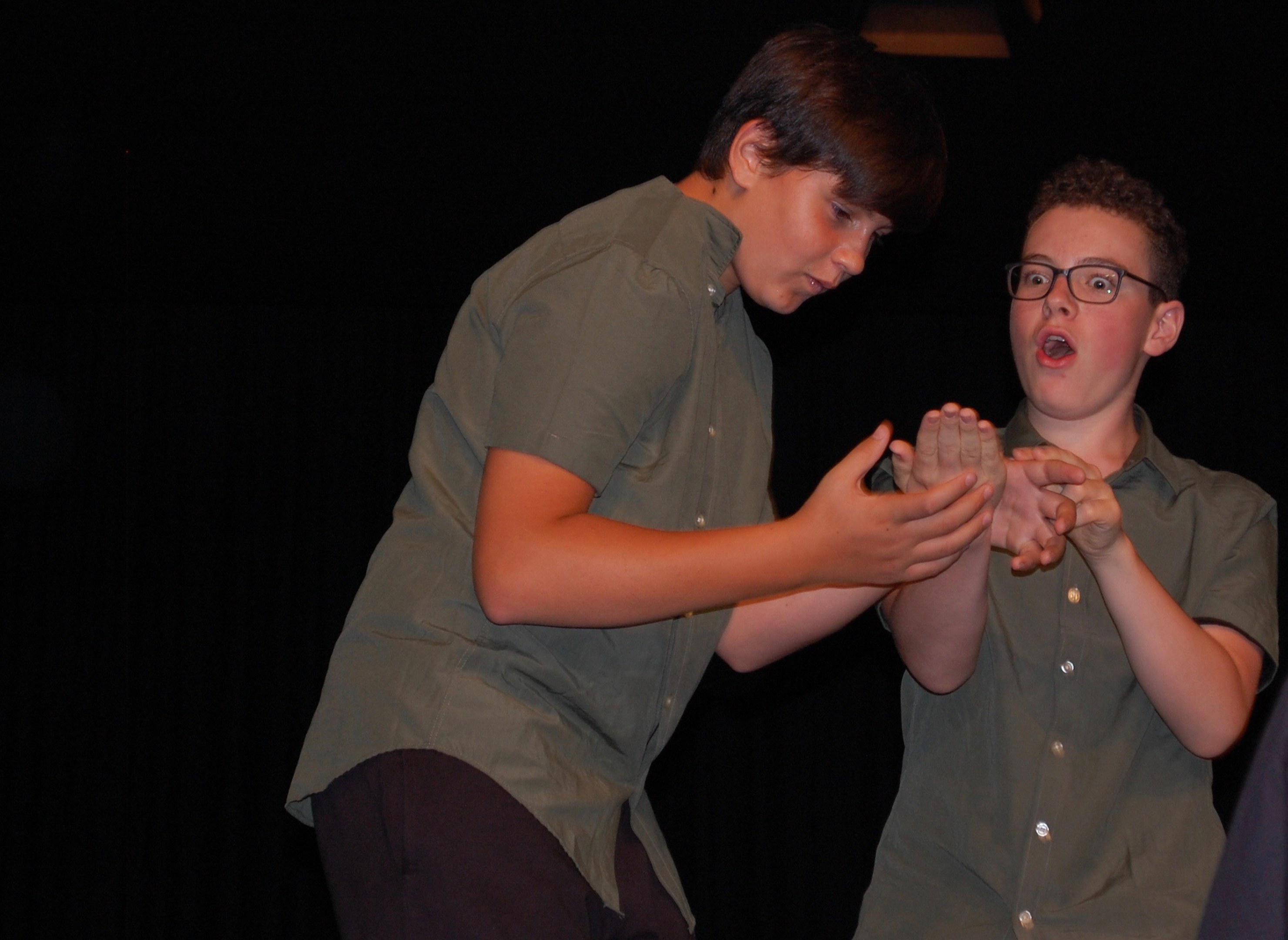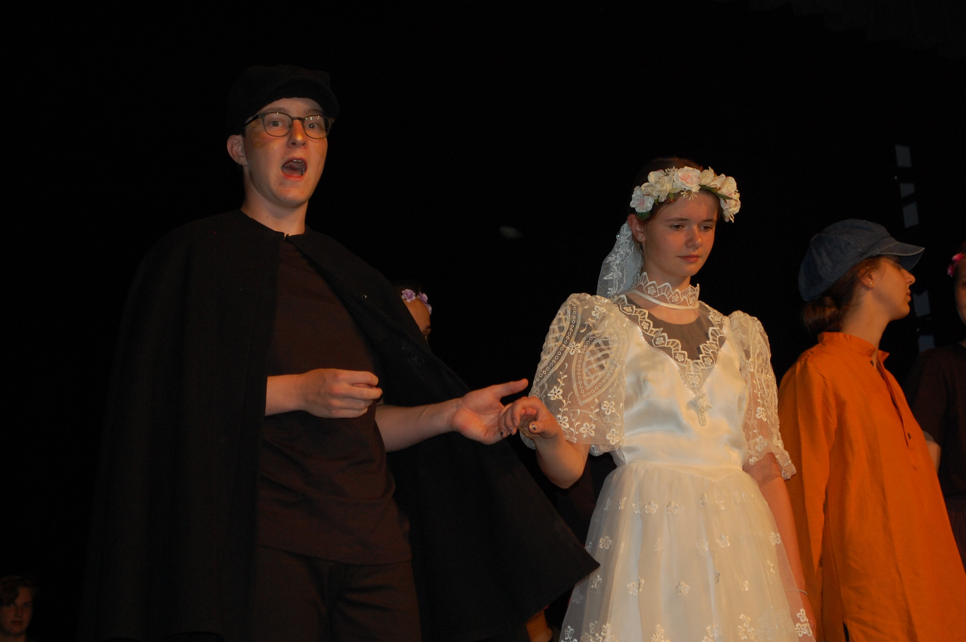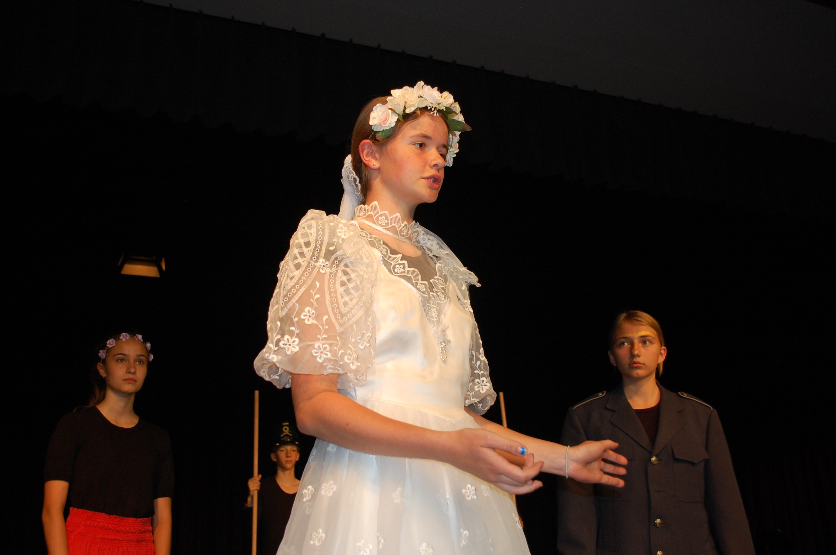 Alle waren sich bewusst, dass wir höchst konzentriert zusammenarbeiten mussten, um dieses Ziel zu erreichen. Und wirklich, am Donnerstagabend gab es keine Schülerinnen mehr, sondern die Katze half Ritter Lanzelot und Elsa, die richtigen Entscheidungen zu treffen, der gefährliche Drache drohte mit der Vernichtung der ganzen Stadt und auf einem unsichtbaren Teppich entschwebte Lanzelot den Blicken der Zuschauer, um den Drachen zu bekämpfen. Dessen drei Köpfe donnerten einer nach dem anderen abgeschlagen auf der Bühne.