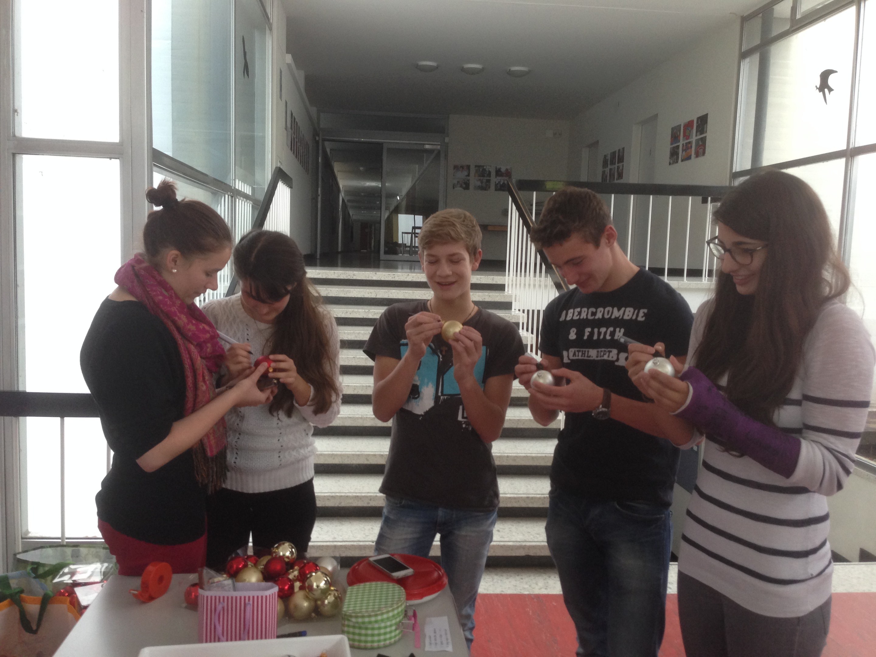 Am nationalen Spendentag für die Opfer des Taifuns auf den Philippinen, dem 18. November 2013, organisierte die Projektgruppe der UNESCO gemeinsam mit der KSM-Schülernschaft, den Lehrpersonen und Mitarbeitenden der KSM einen "Weihnachtskugel-Verkauf" der kreativen Art. Wer wollte, konnte – gegen eine Spende – auf eine Weihnachtskugel mit Filzstift einen Lieblingsvers, einen Wunsch, eine Liebeserklärung, ein Muster oder alles zusammen schreiben oder zeichnen.