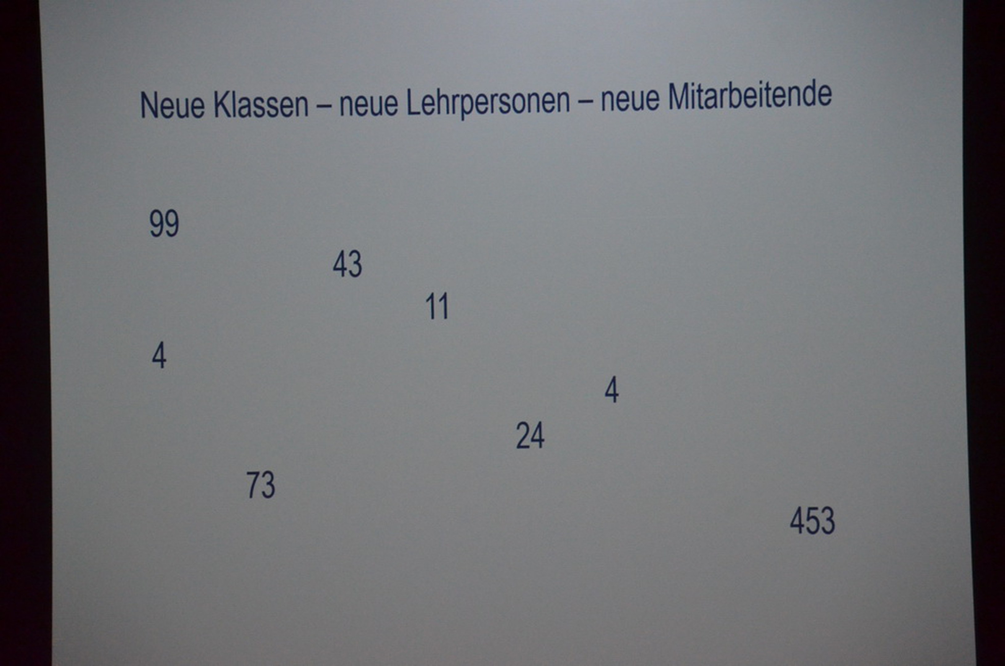 Die Eckwerte zeigen es: Unsere Schule befindet sich weiterhin in einem markanten Wachstum, welches erst mit dem Vollausbau im Schuljahr 2020/2021 seinen Abschluss findet (voraussichtlich 28 Klassen, 500 Schülerinnen und Schüler). Dieses Wachstum bringt mehrere Herausforderungen mit sich: Wir alle müssen dem familiären, vertrauensvollen Umgang an unserer Schule Sorge tragen. Wir werden uns besonders um die neuen Schülerinnen und Schüler bemühen und sie aktiv in die Schulgemeinschaft integrieren.