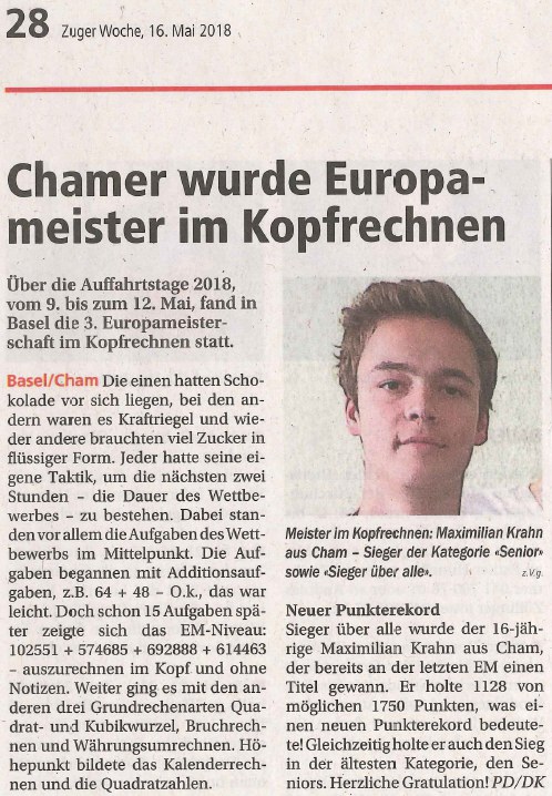 Über die Auffahrtstage 2018, vom 9. bis zum 12. Mai, fand in Basel die 3. Europameisterschaft im Kopfrechnen statt.
