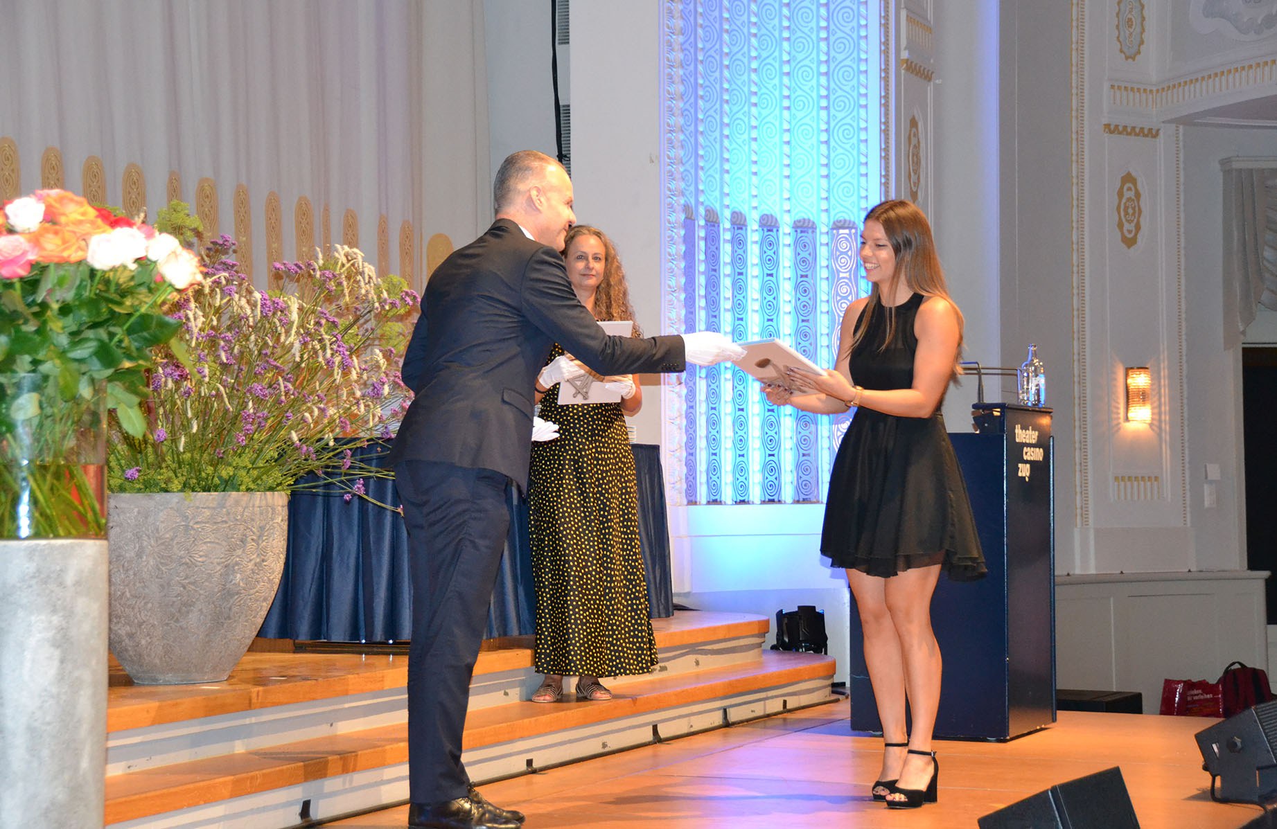 Die Feier fand unter Einhaltung der Covid-19-Schutzvorgaben im Festsaal des Theater Casinos Zug statt. Das Diplom wurde ausnahmsweise ohne Handschlag überreicht und die Diplomandinnen und Diplomanden stiessen von ihren Sitzplätzen mit ihren Kommilitoninnen und Kommilitonen an. Trotz dieser Einschränkungen war die Freude gross, sich nach vielen Monaten im Fernunterricht nochmals treffen zu können, bevor alle ihren eigenen Weg ins Berufsleben antreten.