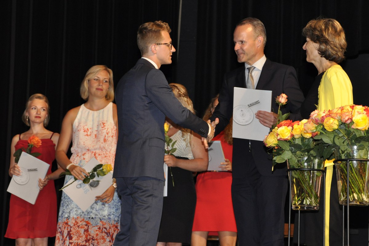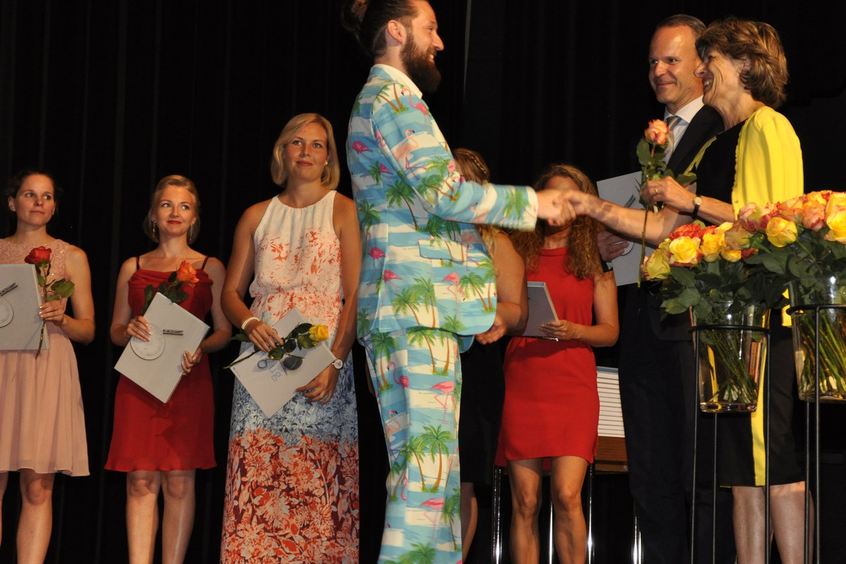Am 27. Juni 2017 wurden 49 Primarlehrerinnen und Primarlehrer und 15 Lehrpersonen für Kindergarten und Unterstufe diplomiert. Regierungsrat Stephan Schleiss überreichte den Absolventinnen und Absolventen der PH Zug das Lehrdiplom. Drei Studierende wurden für herausragende Leistungen speziell gewürdigt: Veronika Müller aus Oberägeri, Marcel Röllin aus Allenwinden und Tobias Weber aus Zürich.