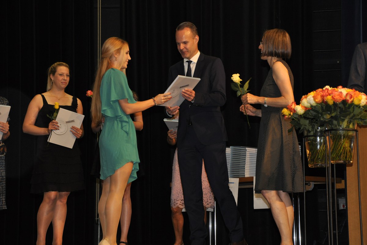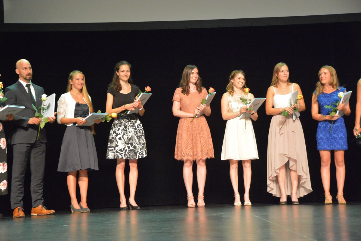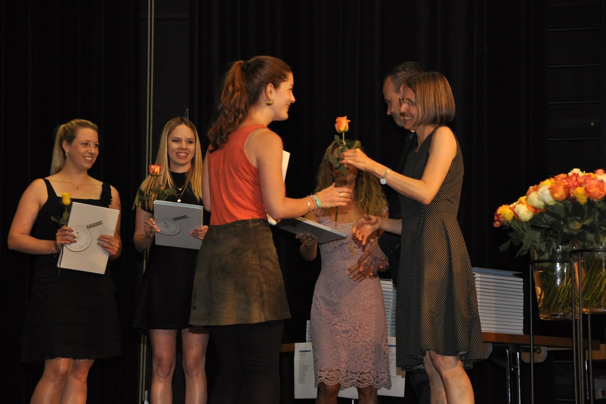 Fünf Studierende wurden für herausragende Leistungen speziell gewürdigt: Lucia Meier aus Neuheim, Fiona Schlegel aus Merenschwand, Anja Spadin aus Oberägeri, Jasmin Tiefenauer aus Hagendorn und Tanja Zürcher aus Cham.