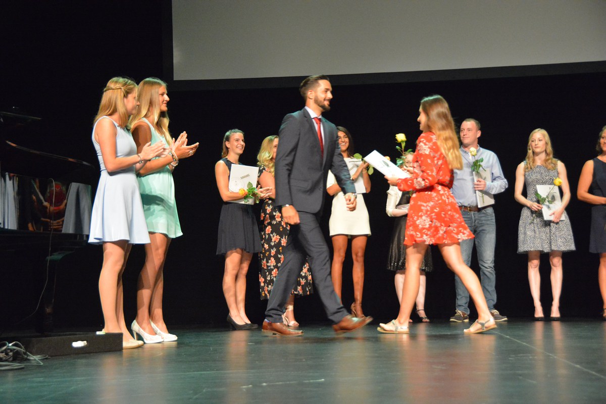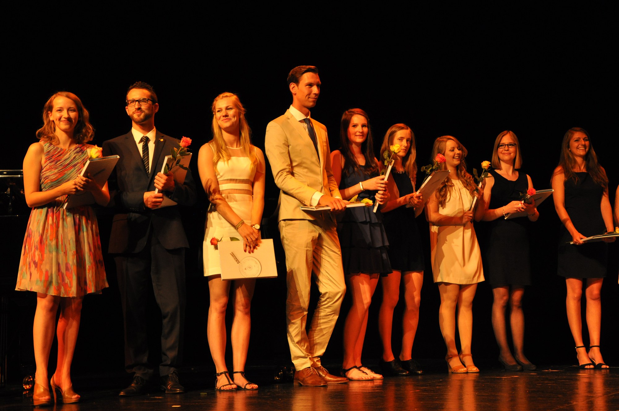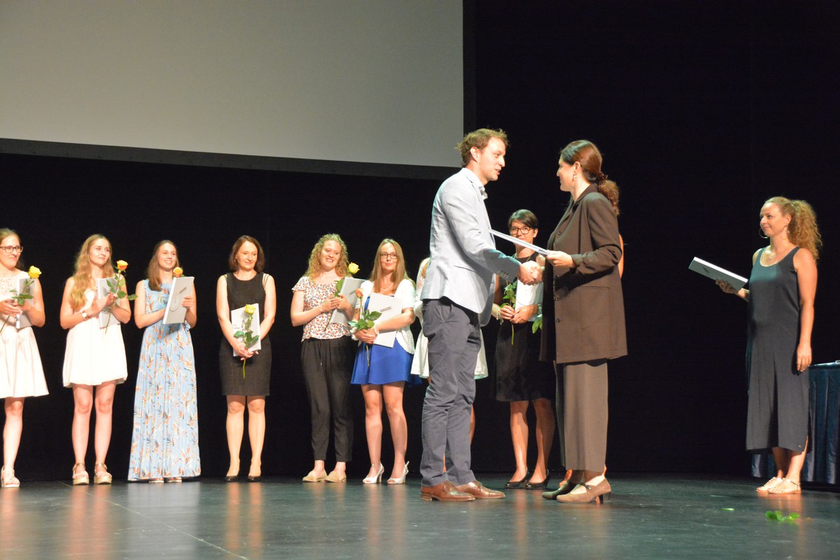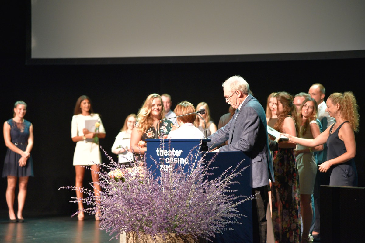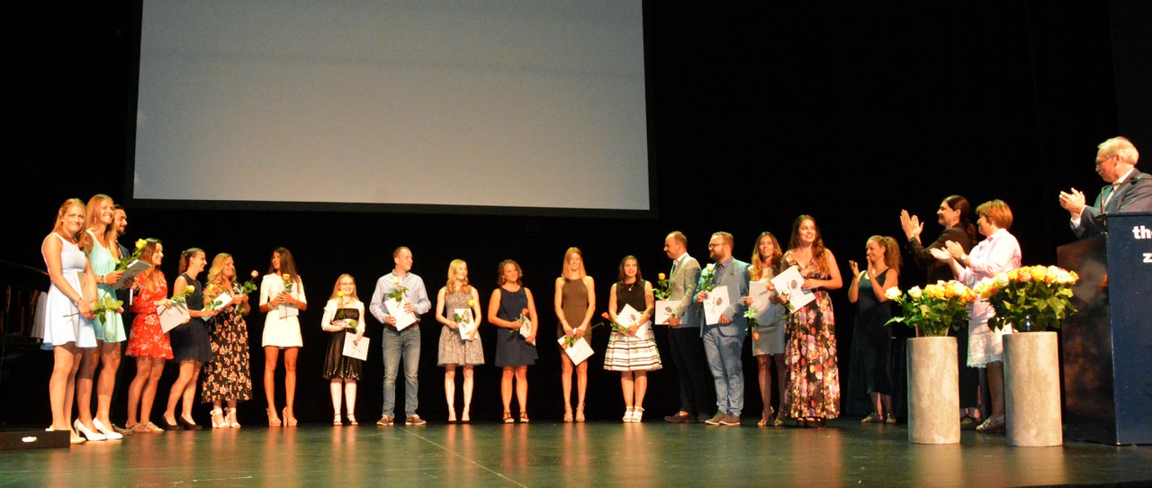 Fünf Studierende wurden für herausragende Leistungen speziell gewürdigt: vom Studiengang Kindergarten / Unterstufe Nadja Hurter aus Rifferswil (ZH) und Nicole Werder aus Hünenberg (ZG) sowie vom Studiengang Primarstufe Damian Haas aus Luzern, Simone Roth aus Knonau (ZH) und Nicole Vogler aus Zürich.