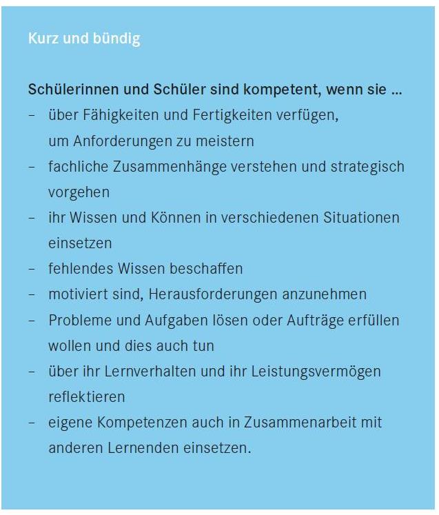 Aus: Broschüre "Kompetenzorientierter Unterricht", 2017, S. 10, Direktion für Bildung und Kultur, Kanton Zug.