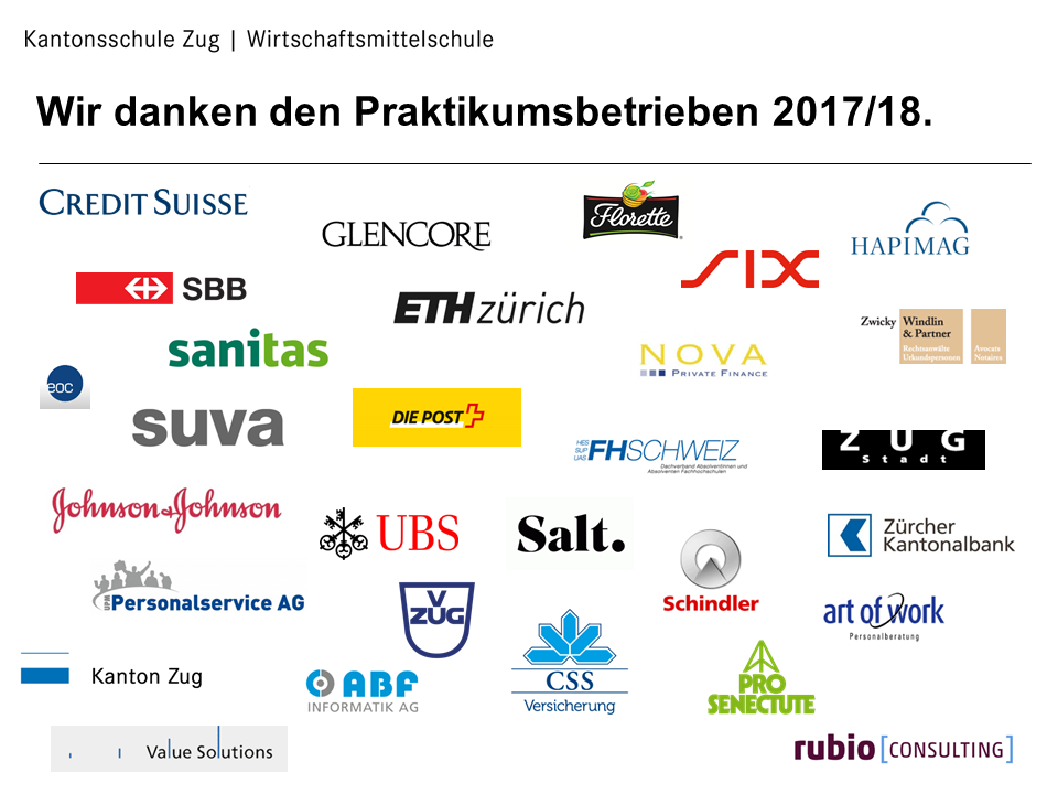 Wir danken diesen Betrieben, die im Schuljahr 2017/18 unsere Lernenden im Langzeitpraktikum ausbilden: