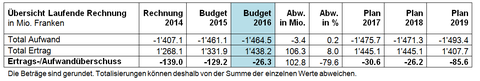Budget 2016 und Finanzplan 2016–2019