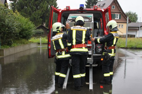 Bei einem Reuss-nahen Wohnhaus musste infolge Hochwasserlage Wasser aus dem Keller gepumpt werden