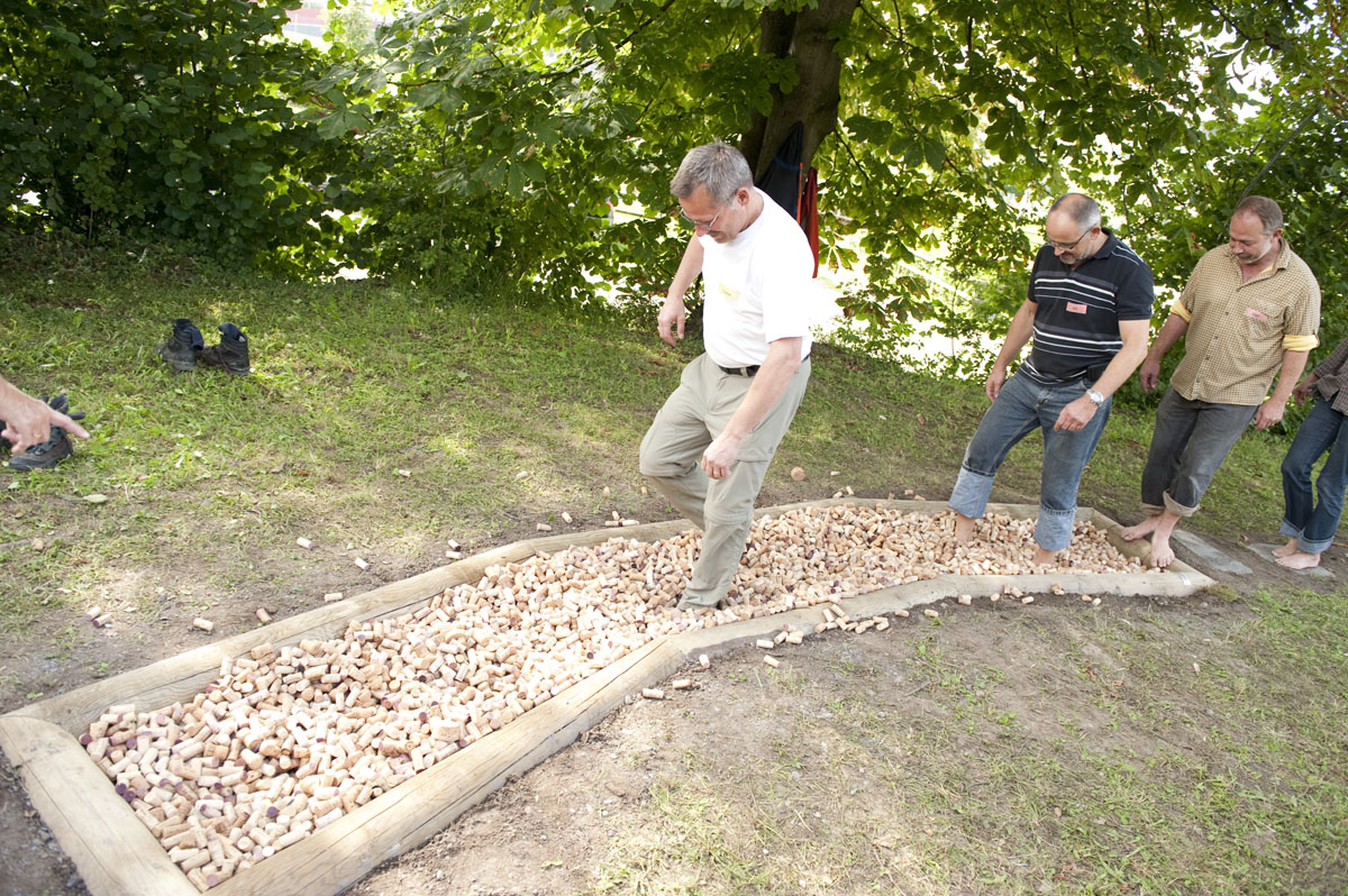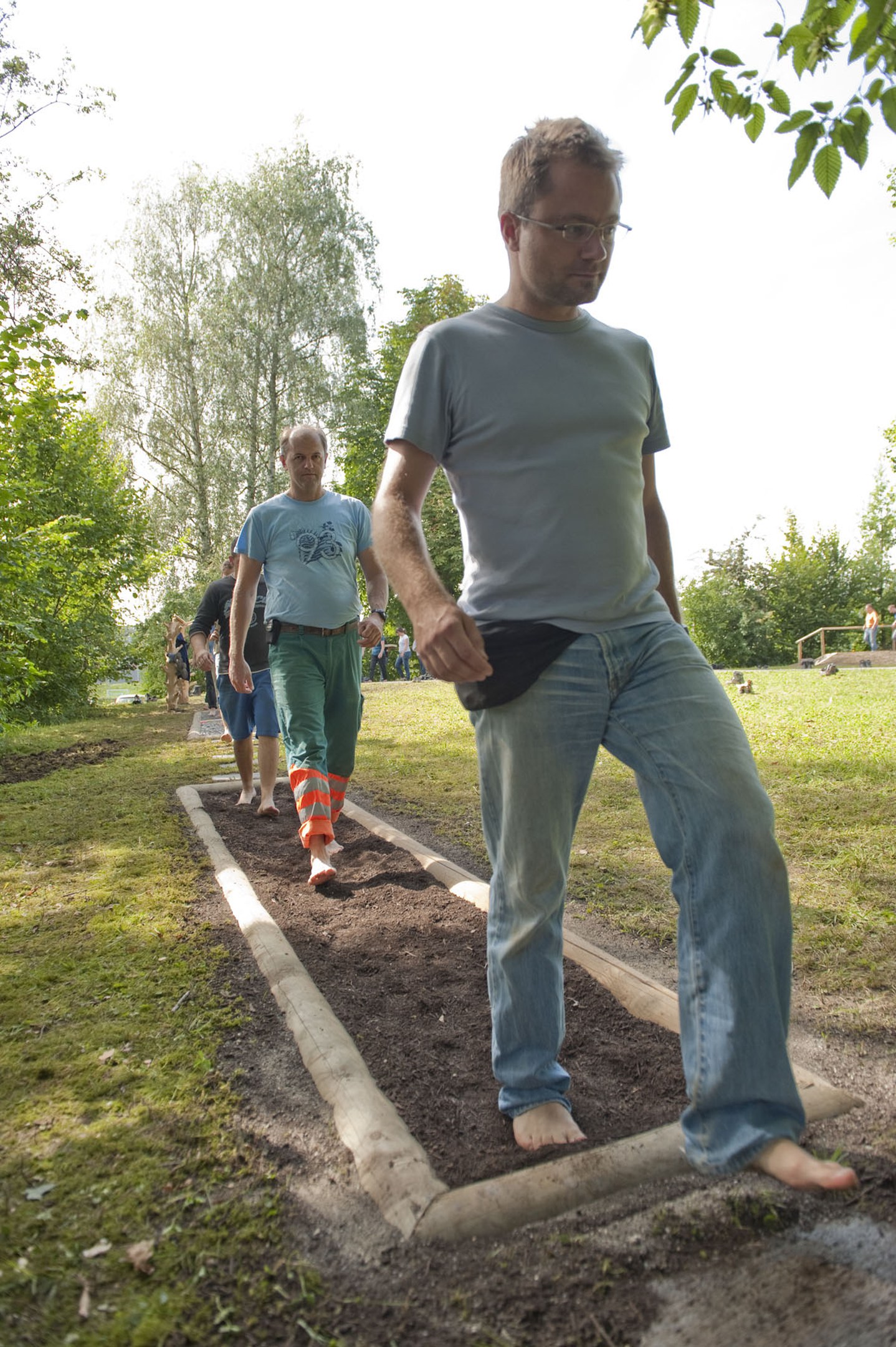 Die Gemeindeverwaltung Hünenberg durfte gemeinsam einen Barfussweg gestalten.