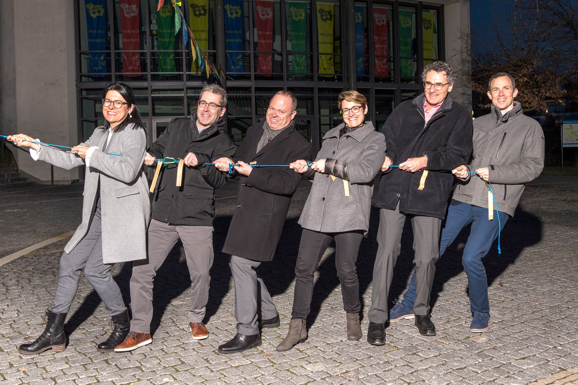 Foto: von links nach rechts: Renate Huwyler (Gemeindepräsidentin und Vorsteherin Präsidiales und Finanzen), Thomas Anderegg (Vizepräsident und Vorsteher Bau und Planung), Guido Wetli (Gemeindeschreiber), Claudia Benninger Brun (Vorsteherin Soziales und Gesundheit), Hubert Schuler (Vorsteher Sicherheit und Umwelt) und Dany Gygli (Vorsteher Bildung).