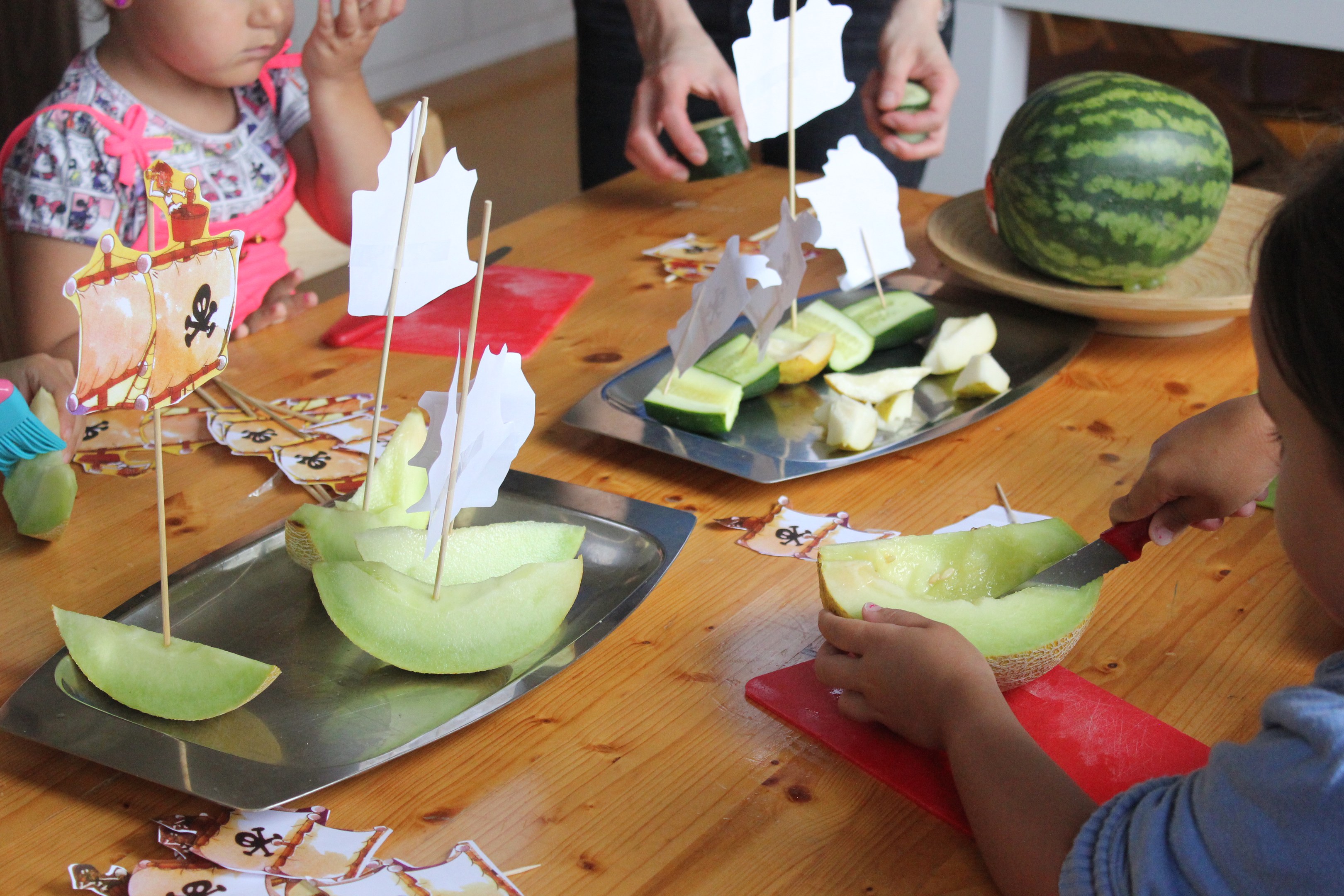 Eine weitere wichtige Grundlage für das Wohlbefinden und die Ausgeglichenheit unserer Kinder bildet eine ausgewogene und gesunde Ernährung. In unserer KiTa werden alle Mahlzeiten täglich frisch zubereitet. Durch die Teilnahme am Projekt "Schnitz und drunder" entwickelten wir unser Verpflegungsangebot weiter. Der Einbezug der verschiedenen kulturellen Hintergründe ist für uns unter anderem ein wichtiger Aspekt.
