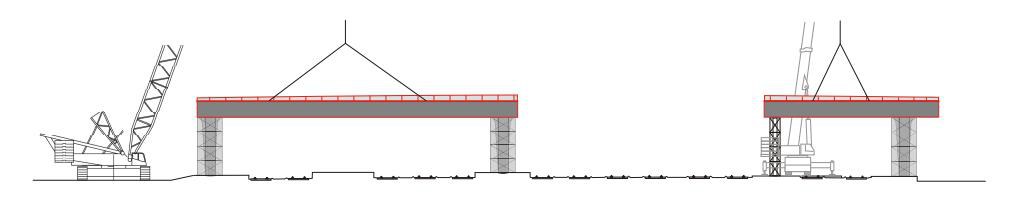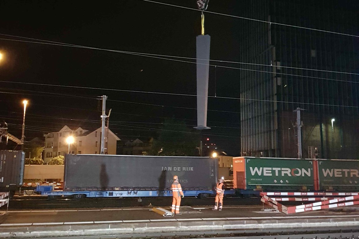 Die Herstellung und der Bauablauf der Brücke unter den gegebenen Randbedingungen des Bahnverkehrs erfordern eine enge Abstimmung zwischen SBB und Bauherrschaft sowie von Konzept, Planung und Ausführung. Es ist das Ziel mit einer möglichst kurzen Bauzeit vor Ort den Bahnverkehr auf ein absolutes Minimum einzuschränken. Die Stahlbauteile werden weitgehend im Werk vorgefertigt und in transportgerechten Grössen zur Baustelle geliefert. Nach Abschluss aller Vorbereitungsarbeiten vor Ort wird der Brückenoberbau in drei Teilen an den Bestimmungsort eingehoben.