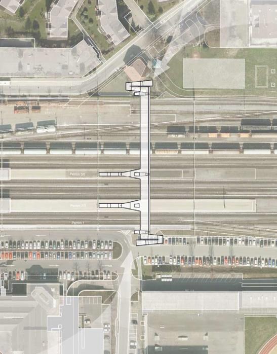 Bei der Ausarbeitung des Projekts wurde grossen Wert auf eine ansprechende Gestaltung, eine gelungene Einbindung in den städtebaulichen Kontext und die Wirtschaftlichkeit über die gesamte Lebensdauer der Brücke gelegt. Eine zentrale technische Herausforderung ist der Bauablauf über dem Gleisfeld sowie die geforderte Flexibilität hinsichtlich einer möglichen zukünftigen Perronverschiebung.