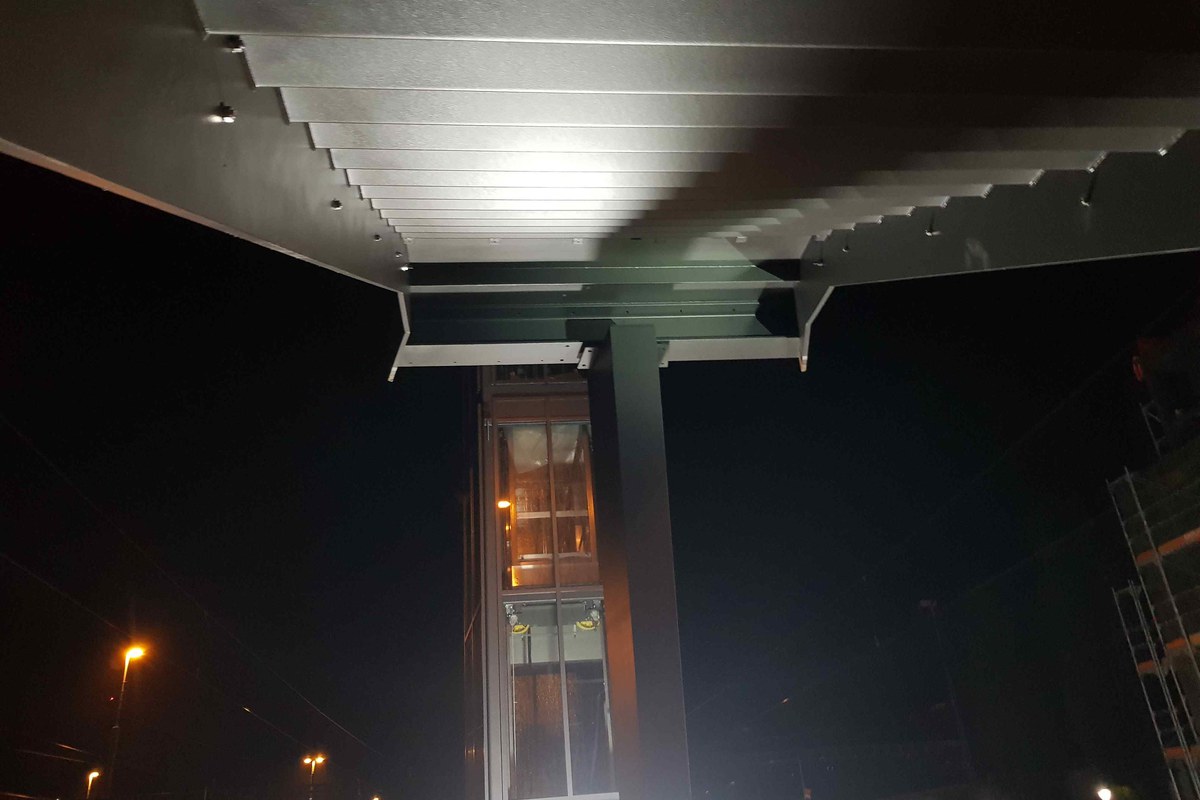 Als Beleuchtung ist auf der Brücke ein LED-Lichtband vorgesehen. Mittels einer Lamelle wird die Blendwirkung in Längsrichtung verhindert.