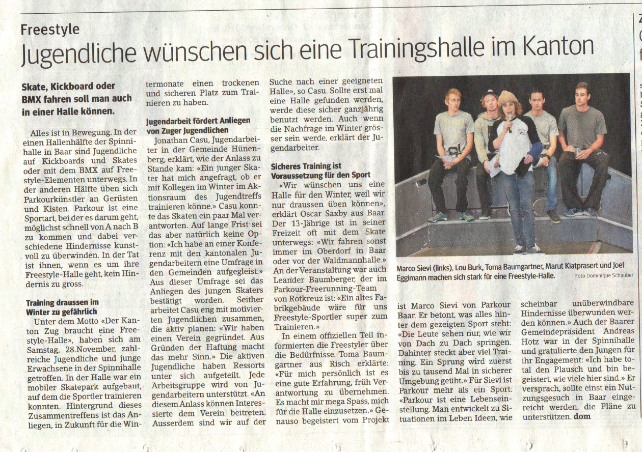 | Jugendliche engagieren sich fuer eine Freestyle Halle_Zuger Presse 9.12.15 | 28.08.2019 |