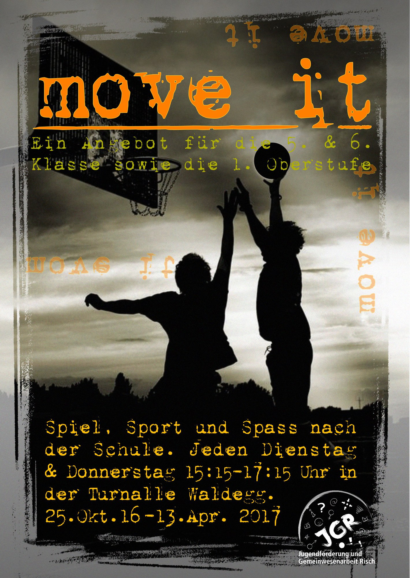 Die Jugendförderung und Gemeinwesenarbeit Risch (JGR) bietet ab den Herbstferien mit dem Projekt move-it Jugendlichen zwischen der 5. Klasse und der 1. Oberstufe die Möglichkeit, nach Schulschluss die Zeit bis zum Abendessen mit Spiel, Sport und einem Z‘vieri sinvoll zu nutzen. Jeweils dienstags und donnerstags öffnen wir, begleitet vom Team der Jugendförderung, ab 15.15 Uhr bis 17.15 Uhr die Turnhalle Waldegg. Das Angebot ist kostenfrei und eine Anmeldung ist nicht nötig. Saisonschluss ist die letzte Schulwoche vor den Frühlingsferien.
