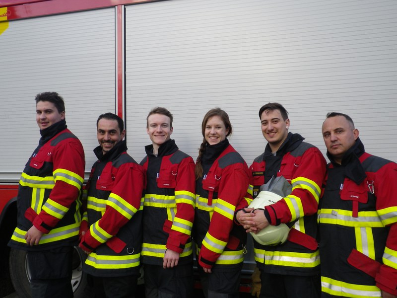 Am Freitag 3. März und Samstag 4. März erlernten unsere neue Kameradin und neuen Kameraden das Feuerwehrhandwerk. v.l.n.r. Nico Casillo, Rafael Caramelo, Leo Ohnsorg, Jennifer Staudigl, Siro Wesemann, Boban Miric