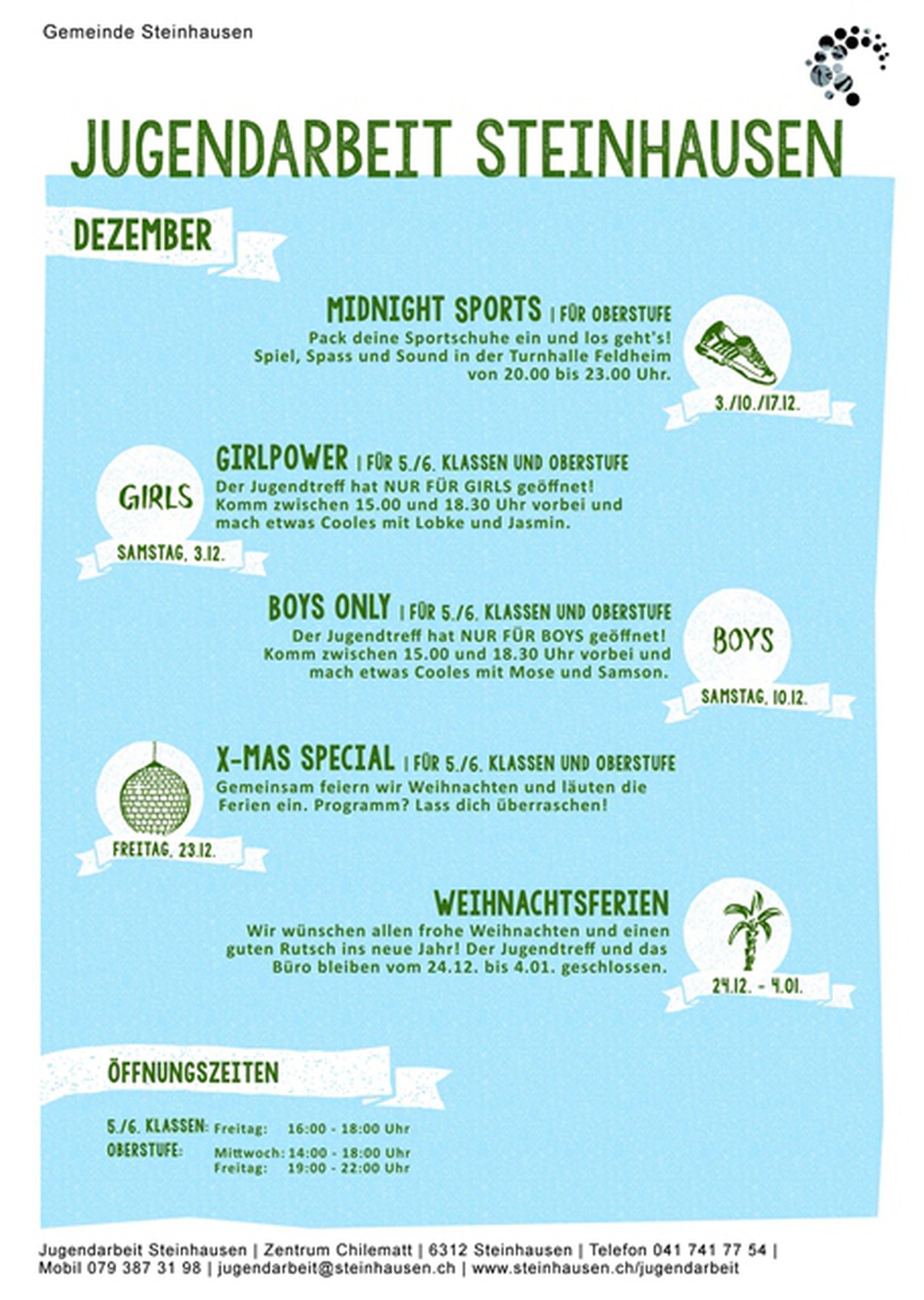24.11.2016Monatsprogramm DezemberMidnight Sports, Girl- and Boypower, X-Mas Special. Die Schlagworte im Dezember. Mehr auf dem Programm.https://publisher-zgch-dev.webcloud7.ch/izug/platform/behoerden/gemeinden/steinhausen/jugendarbeit/infos/aktuelles/monatsprogramm-dezember-1https://publisher-zgch-dev.webcloud7.ch/izug/platform/logo.png