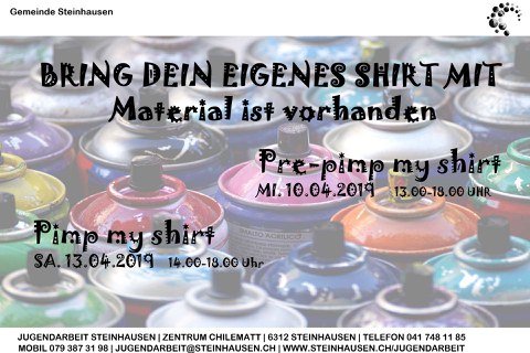15.03.2019Pimp my ShirtBring dein eigenes Shirt mit, kreiere deine eigene Schablone und leg los.https://publisher-zgch-dev.webcloud7.ch/izug/platform/behoerden/gemeinden/steinhausen/jugendarbeit/infos/aktuelles/pimp-my-shirthttps://publisher-zgch-dev.webcloud7.ch/izug/platform/logo.png