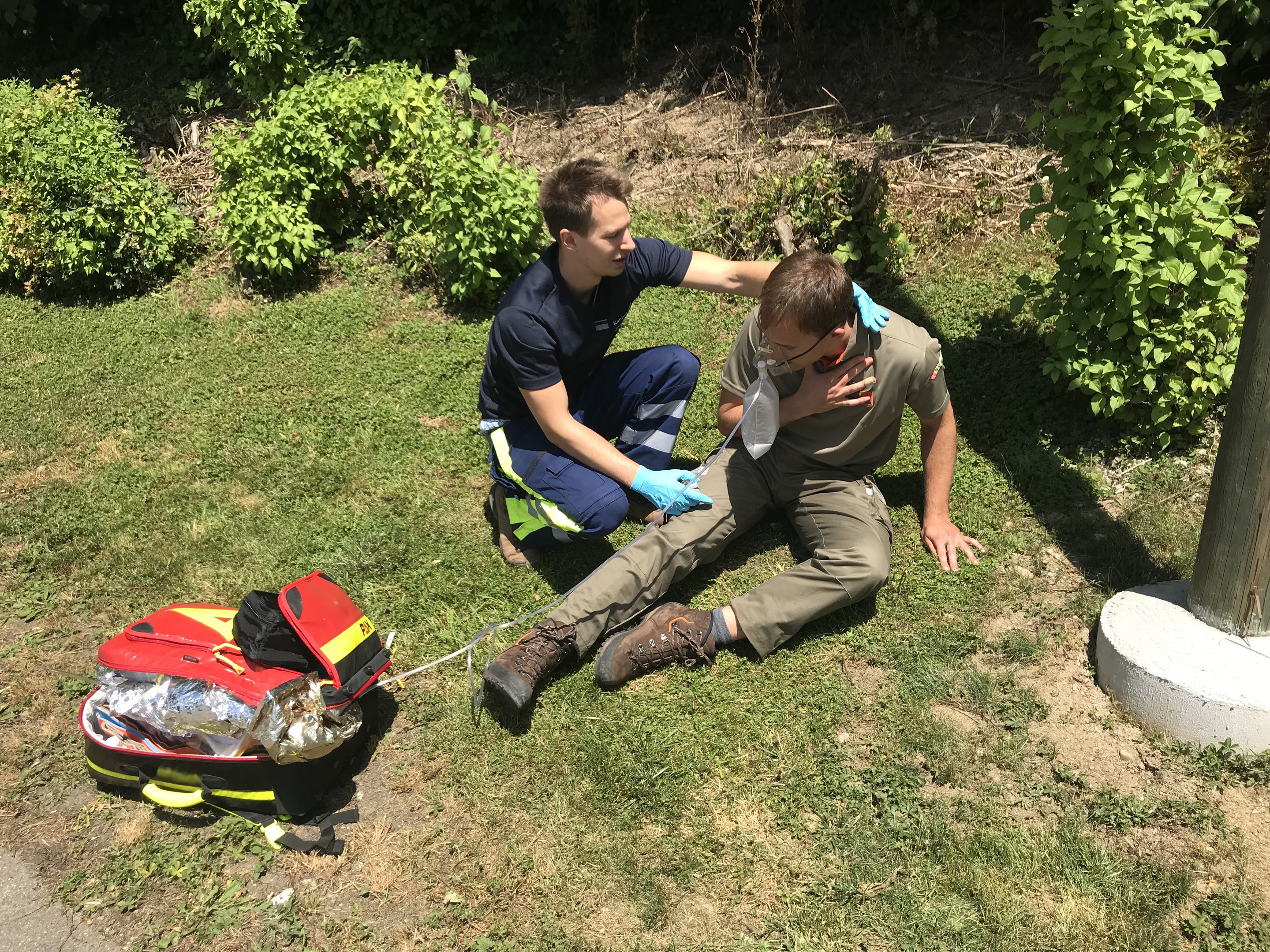 Am ersten Ausbildungstag standen Themen wie Materialkenntnis, Überprüfung der Vitalfunktionen, Abgabe von Sauerstoff, Repetitorium BLS/AED, ABCDE-Schema, Blutstillung und Fixationen im Mittelpunkt.