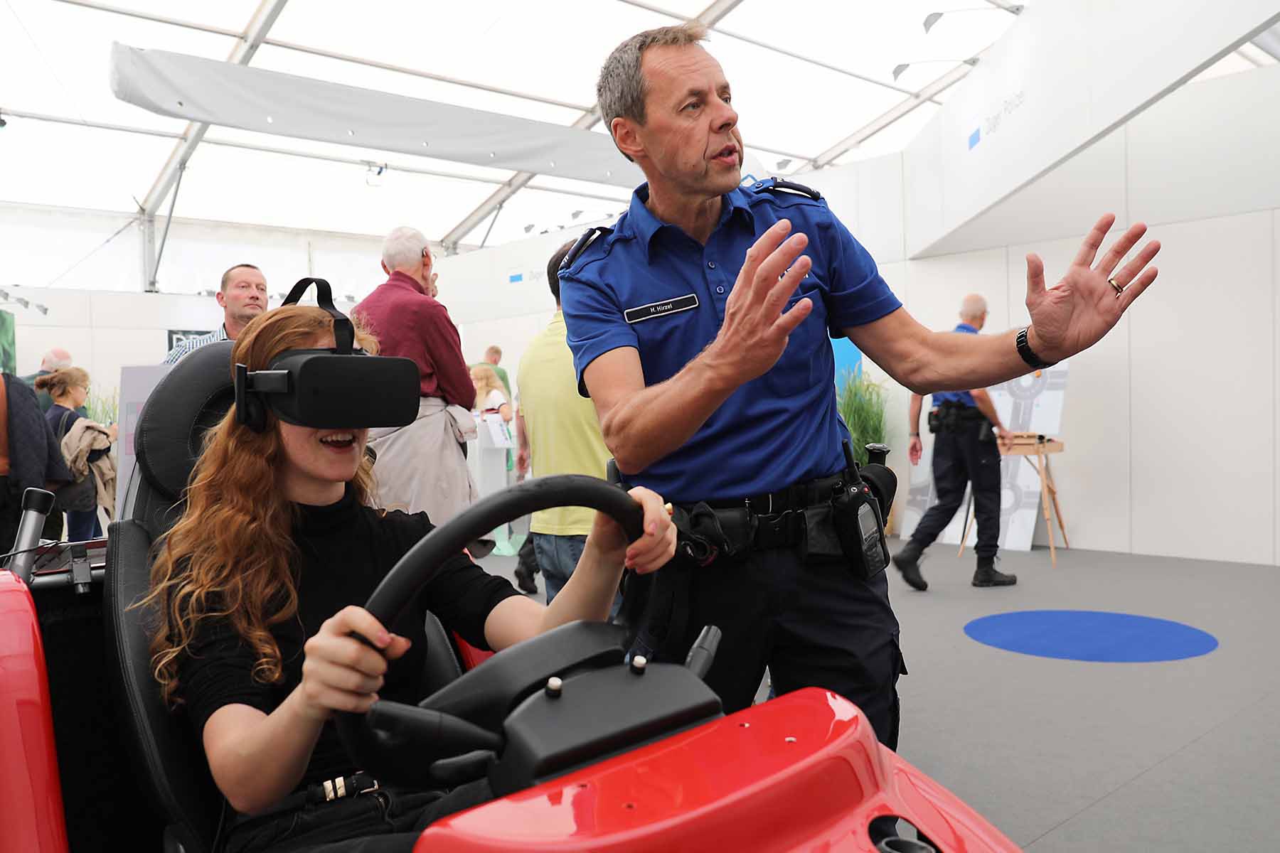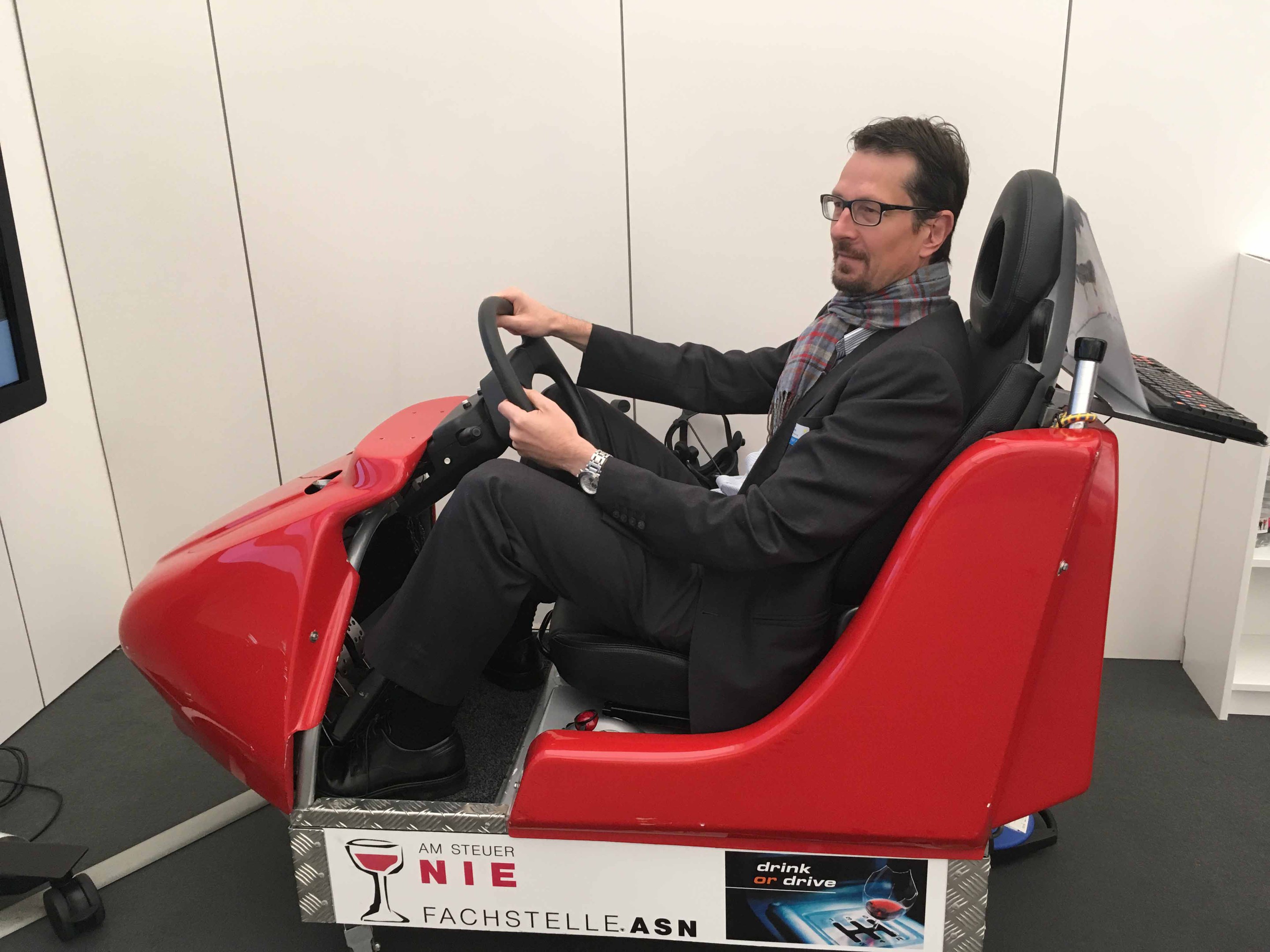 Die Besucherinnen und Besucher liessen sich nicht zweimal bitten, im Fahrsimulator Platz zu nehmen. Mit virtuellem Bier im Blut konnten sie ihr Fahrvermögen unter Beweis stellen. Der Simulator zeigte ihnen in der Analyse schonungslos auf, ob sie auch alkoholisiert unfallfrei gefahren wären. Und er verfehlte seine Wirkung nicht: Viele zeigten sich von ihren Resultaten in nicht fahrfähigem Zustand beeindruckt, manche sogar schockiert. Fahren oder Trinken – entscheide richtig!