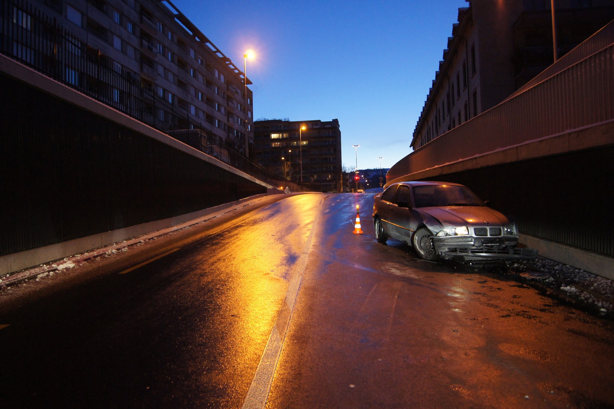 Ein Auto mit vier Sommerreifen geriet ins Schleudern und kollidierte zweimal mit einer Mauer. Ein Insasse wurde leicht verletzt.