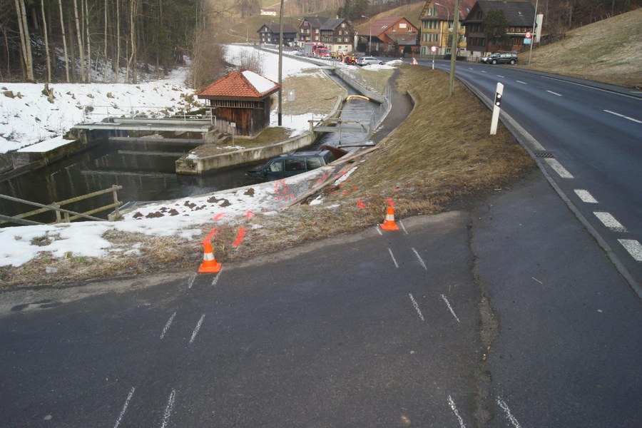 | 034 / Unterägeri: Selbstunfall eines Personenwagens endet im Fluss | Dokument |