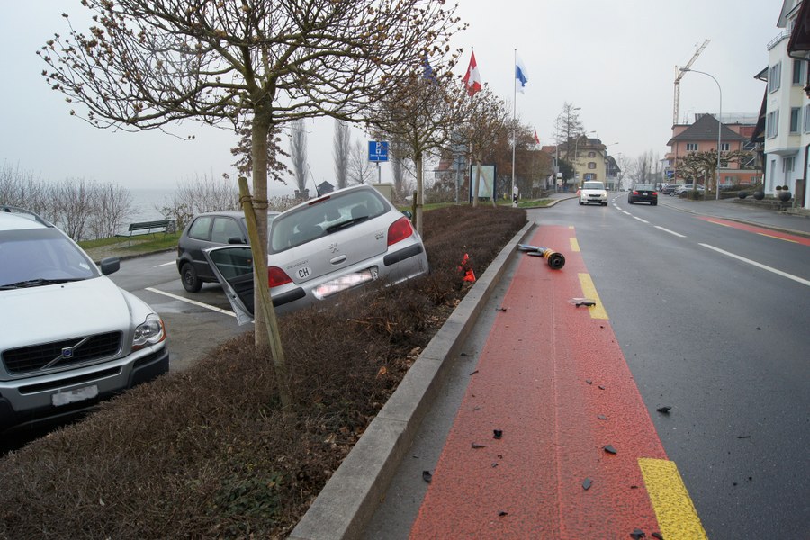 Am Montag (25. März 2013) fuhr eine 76-jährige Autofahrerin kurz vor 09:30 Uhr auf der Artherstrasse in Richtung Zug. In Oberwil kam sie aus noch ungeklärten Gründen links von der Strasse ab und prallte in ein parkiertes Auto.