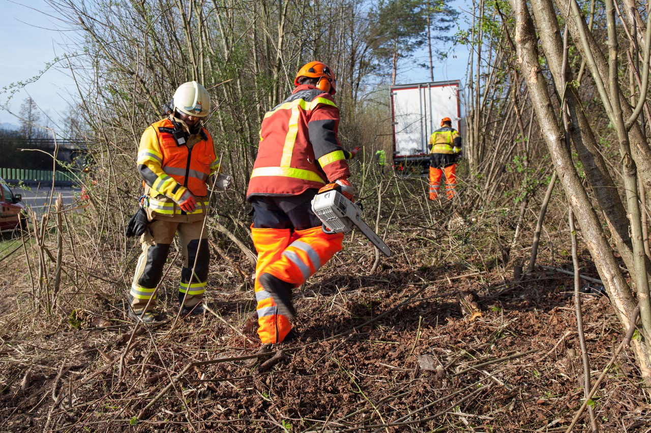 Auf der Autobahn A4a ist ein Lastwagen von der Strasse abgekommen und im angrenzenden Gehölz zum Stillstand gekommen. Der Chauffeur verstarb noch auf der Unfallstelle.