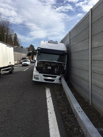 067 / Baar: Lastwagen prallt auf der Autobahn in Lärmschutzwand