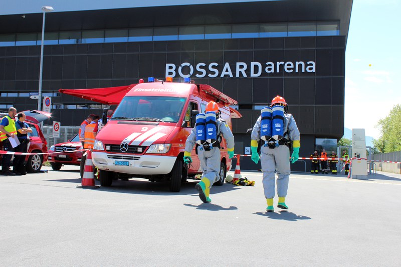 Im Technikraum der Bossard Arena strömte Ammoniak aus. Die Feuerwehr evakuierte das Gebäude. Eine Gefahr für die Bevölkerung bestand nicht.