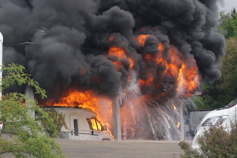 082 / Baar: Mehrere Wohnmobile von Flammen zerstört
