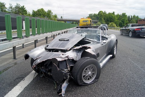 085 / Steinhausen: Sportwagen kracht in Leitplanke