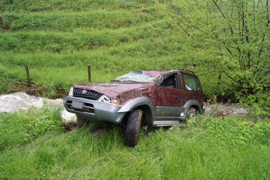 In einer langgezogenen Kurve verlor ein Fahrzeuglenker die Herrschaft über sein Fahrzeug. Der Wagen überschlug sich darauf mehrmals und kam in einem Bachbett zum Stehen. Der unter Medikamenteneinfluss stehende Lenker verletzte sich leicht.