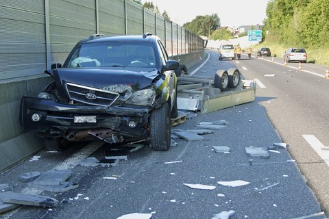 090 / Baar: Anhänger überschlägt sich in voller Fahrt
