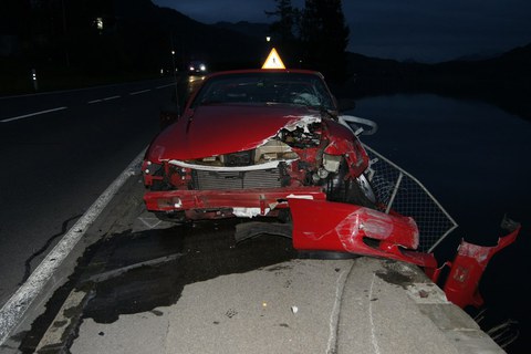 098 / Oberägeri: Zu schnell in die Kurve - Auto prallt in Geländer