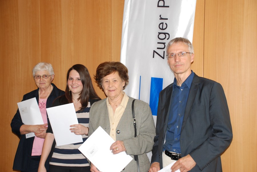 v.l.n.r: Frau Keusch (Preisübernahme für ihren verhinderten Sohn), Natalie Cabelduc, Margrith Grimm, Otto Widmer. Herr Keller musste sich kurzfristig abmelden.
