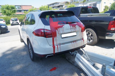 113 / Zug: Porsche mit Farbe übergossen - Zeugenaufruf