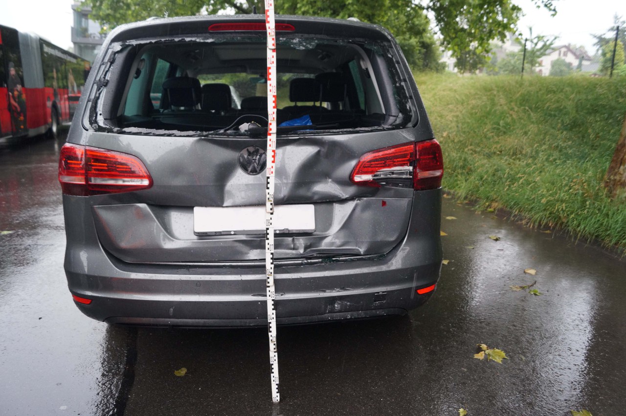 Der Unfall ereignete sich am Dienstag (9. Juni 2020), kurz nach 09:00 Uhr, auf der Artherstrasse in Zug. Ein Bus der Linie 5 der Zugerland Verkehsbetriebe fuhr von Oberwil kommend Richtung Innenstadt. Unmittelbar vor der Bushaltestelle «Zug Casino» bemerkte der 62-jährige Buschauffeur zu spät, dass die Fahrzeuge vor ihm aufgrund stockenden Verkehres abbremsten und prallte in das Heck des vor ihm fahrenden Autos. Dieses wurde nach vorne in das Heck eines weiteren Fahrzeugs und dieses wiederum in ein drittes Auto geschoben.